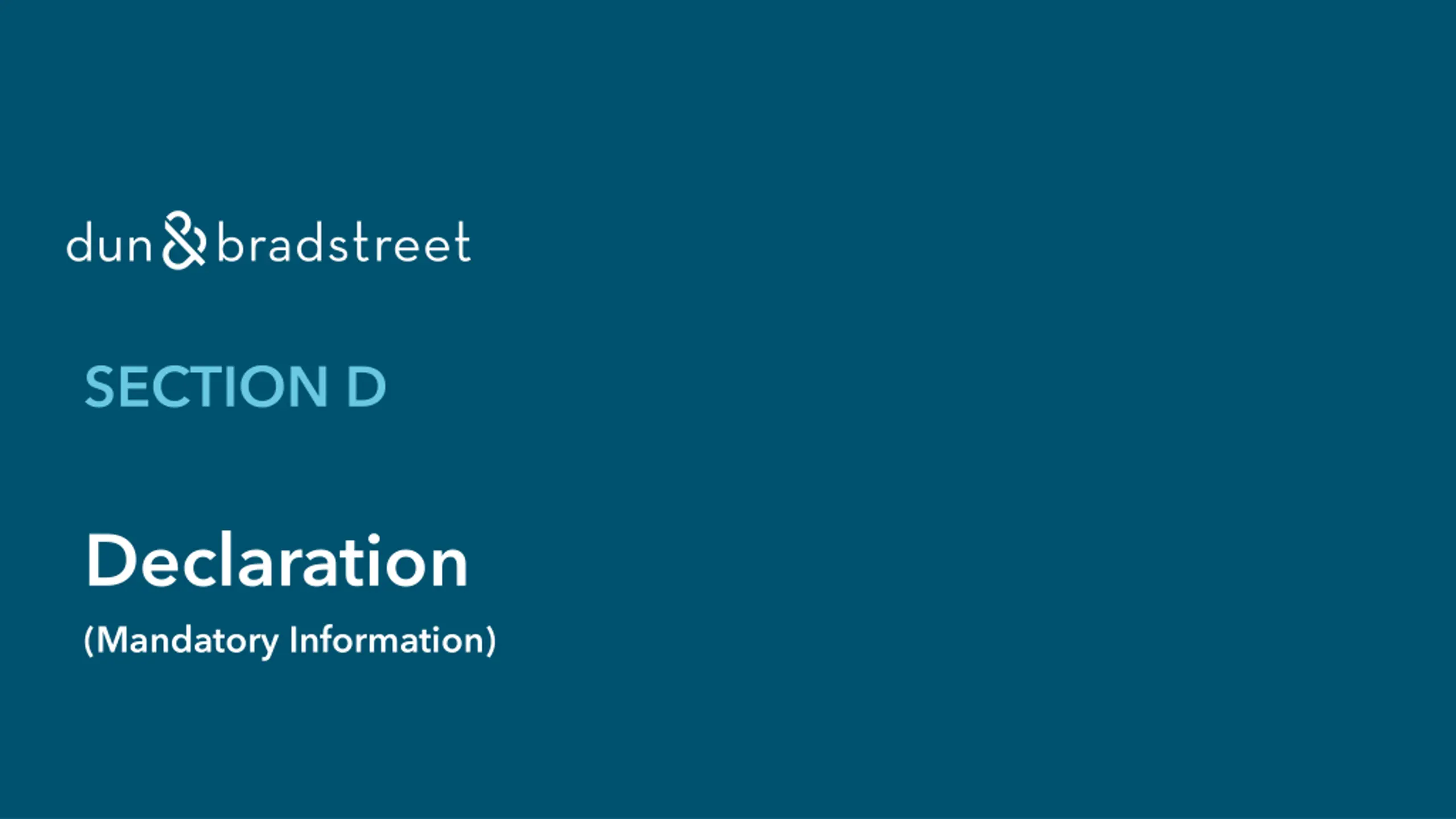 SECTION D Declaration (Mandatory Information) Internal Use Only