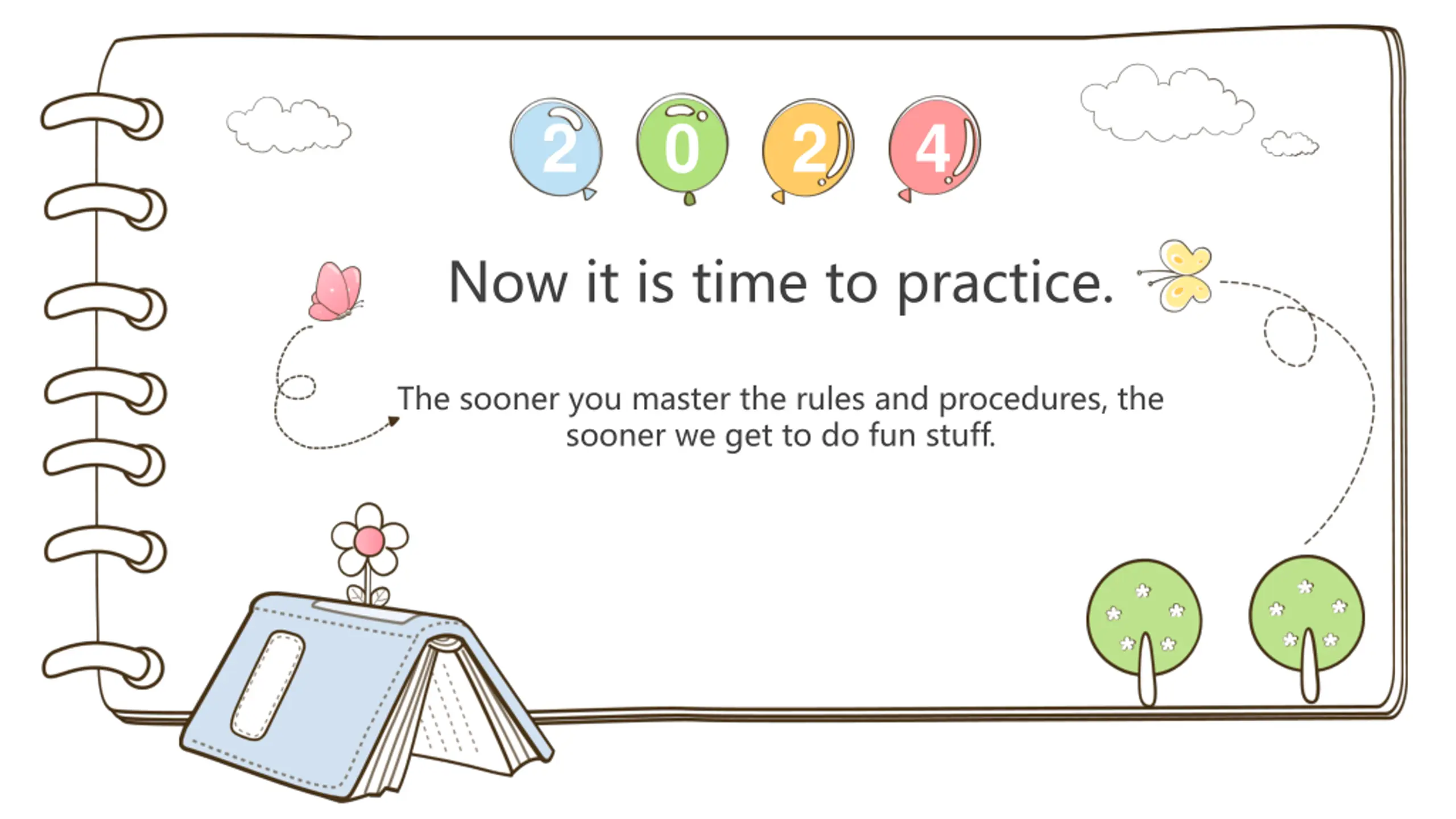 2 0 2 4 Now it is time to practice. The sooner you master the rules and procedures, the sooner we get to do fun stuff.