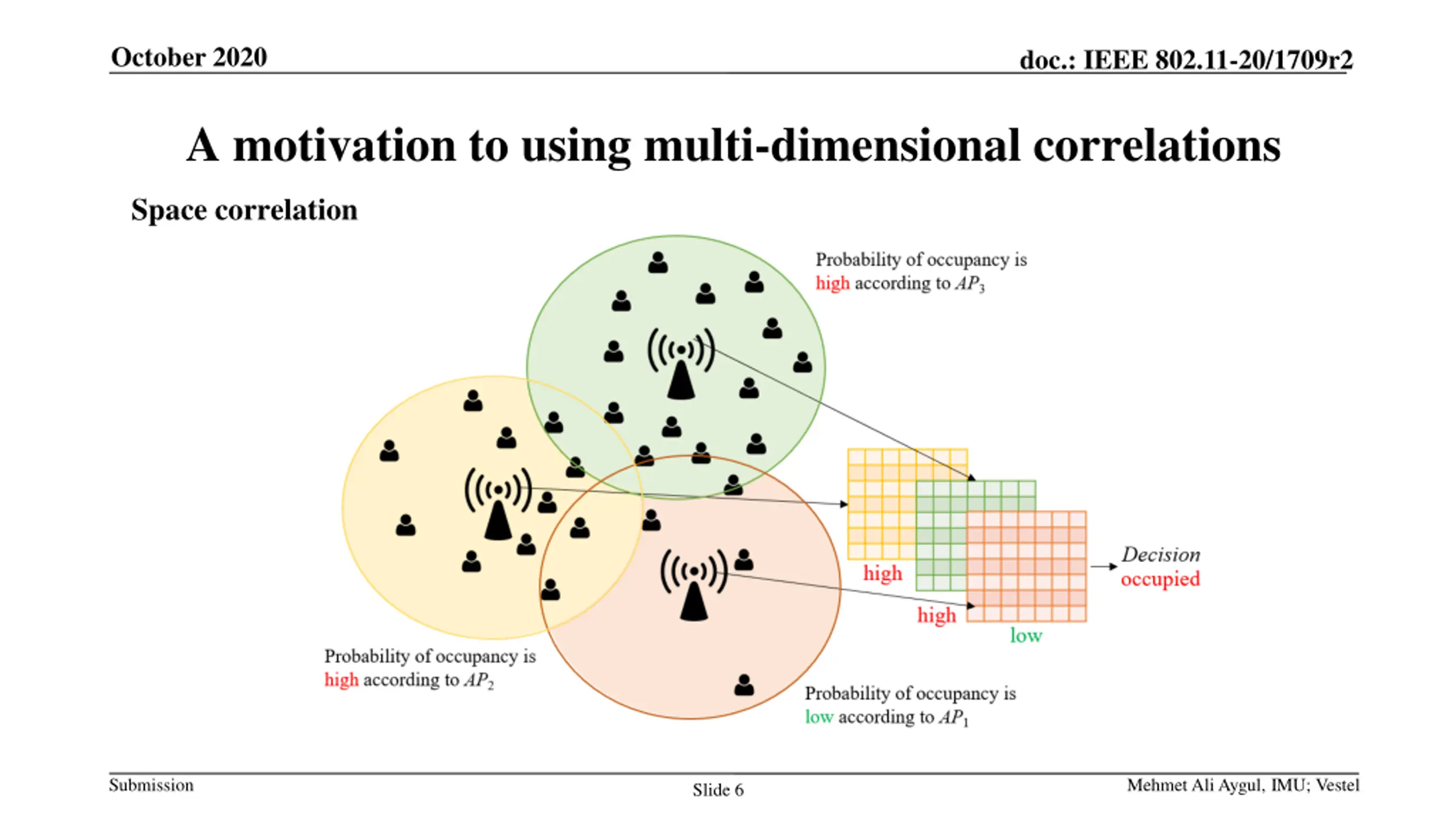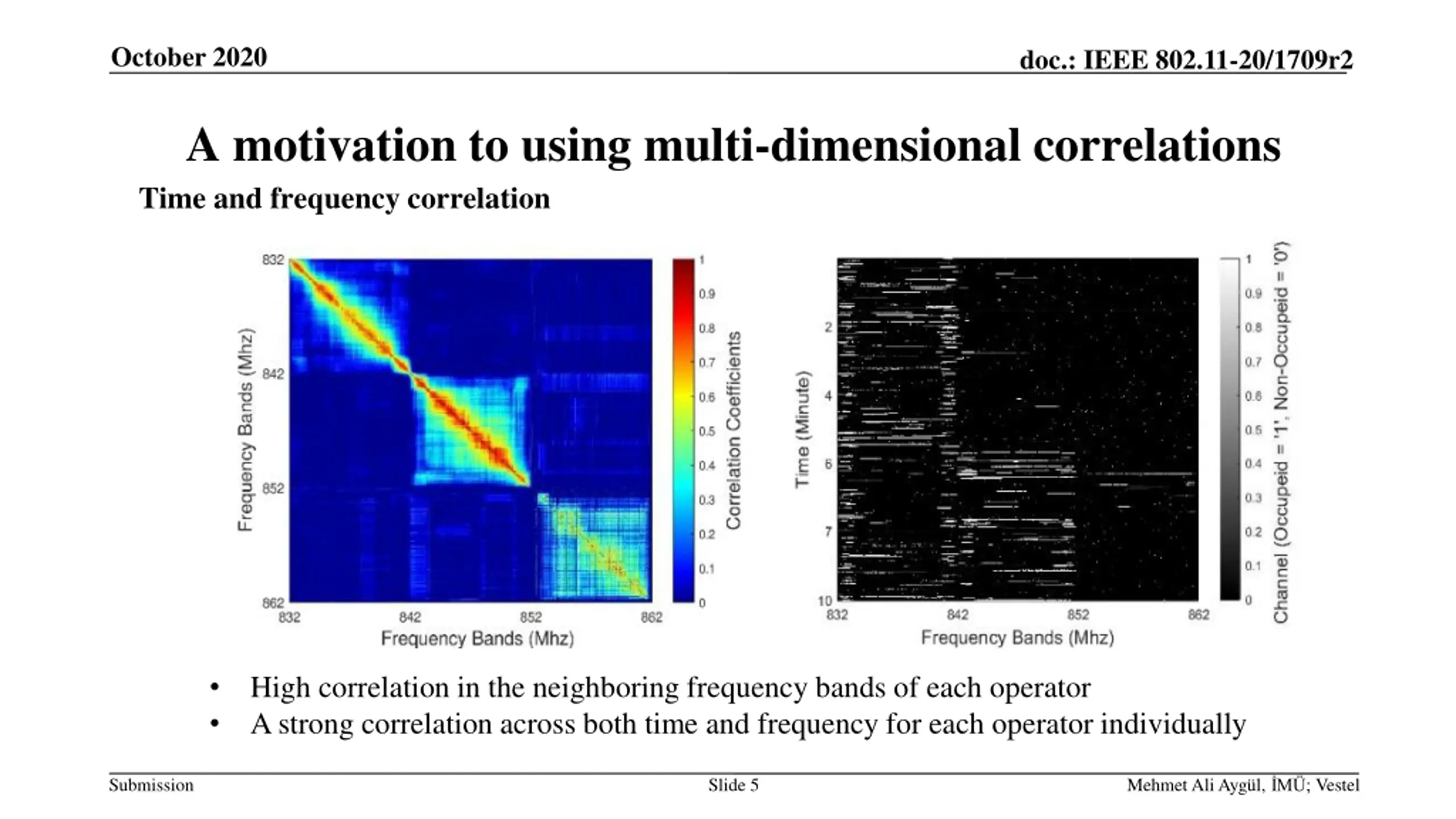 October 2020 doc.: IEEE 802.11-20/1709r2 A motivation to using multi-dimensional correlations Time and frequency correlation (b) (a) High correlation in the neighboring frequency bands of each operator A strong correlation across both time and frequency for each operator individually Submission Slide 5 Mehmet Ali Ayg l, M ; Vestel
