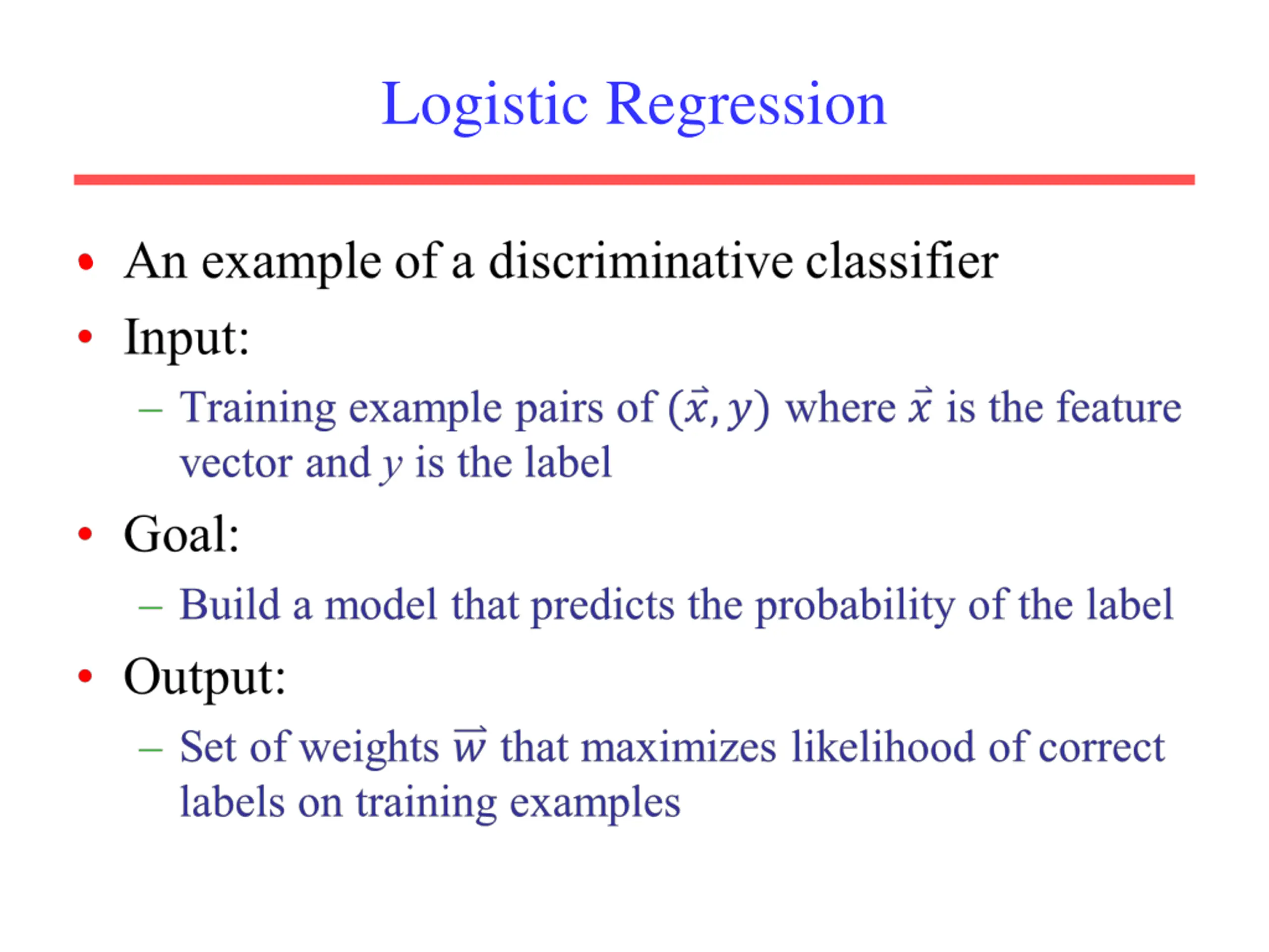 Summary of Logistic Regression Learns the Conditional Probability Distribution P(y|x) Local Search. Begins with initial weight vector. Modifies it iteratively to maximize an objective function. The objective function is the conditional log likelihood of the data so the algorithm seeks the probability distribution P(y|x) that is most likely given the data. 35