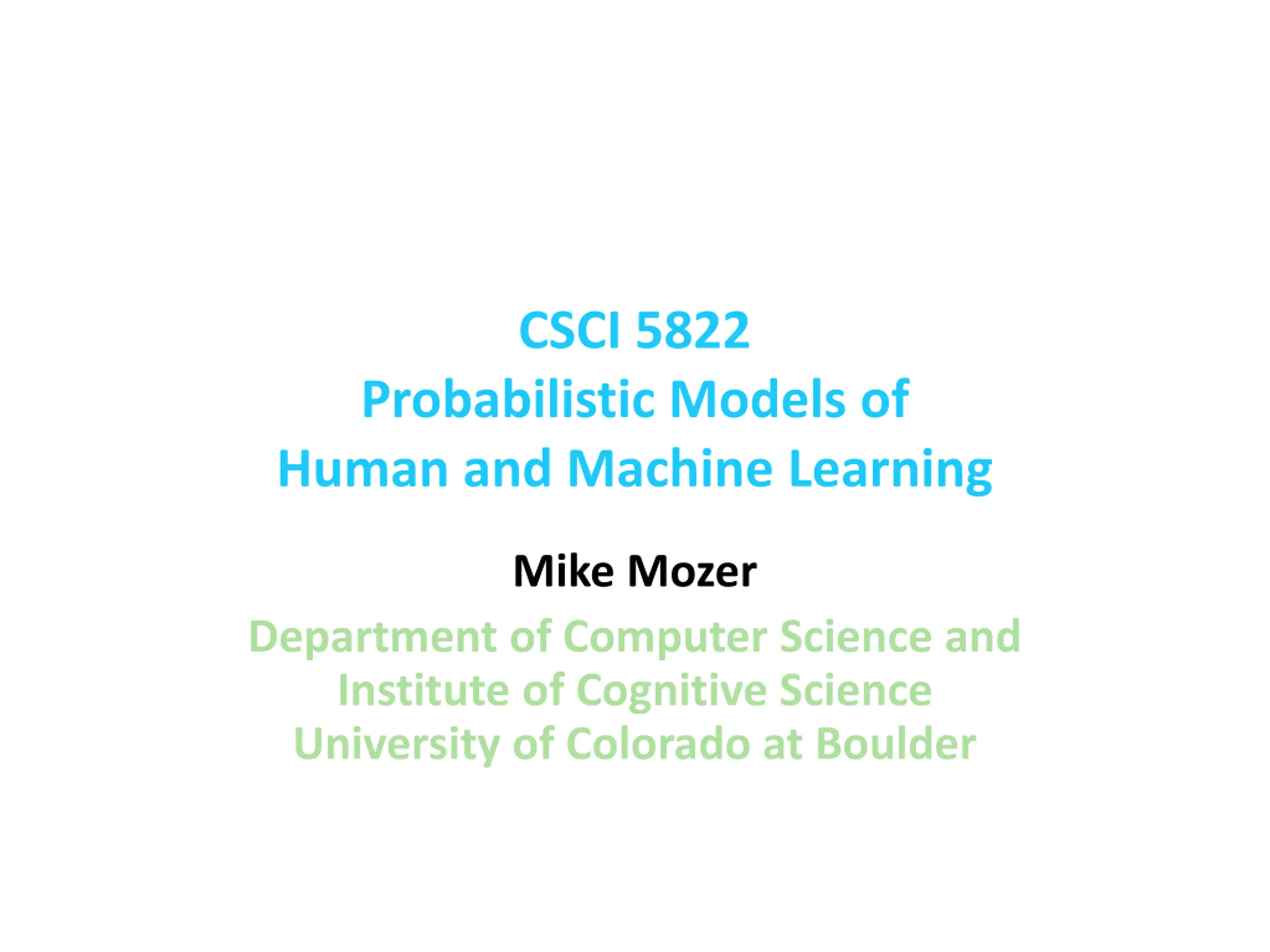 CSCI 5822 Probabilistic Models of Human and Machine Learning Mike Mozer Department of Computer Science and Institute of Cognitive Science University of Colorado at Boulder