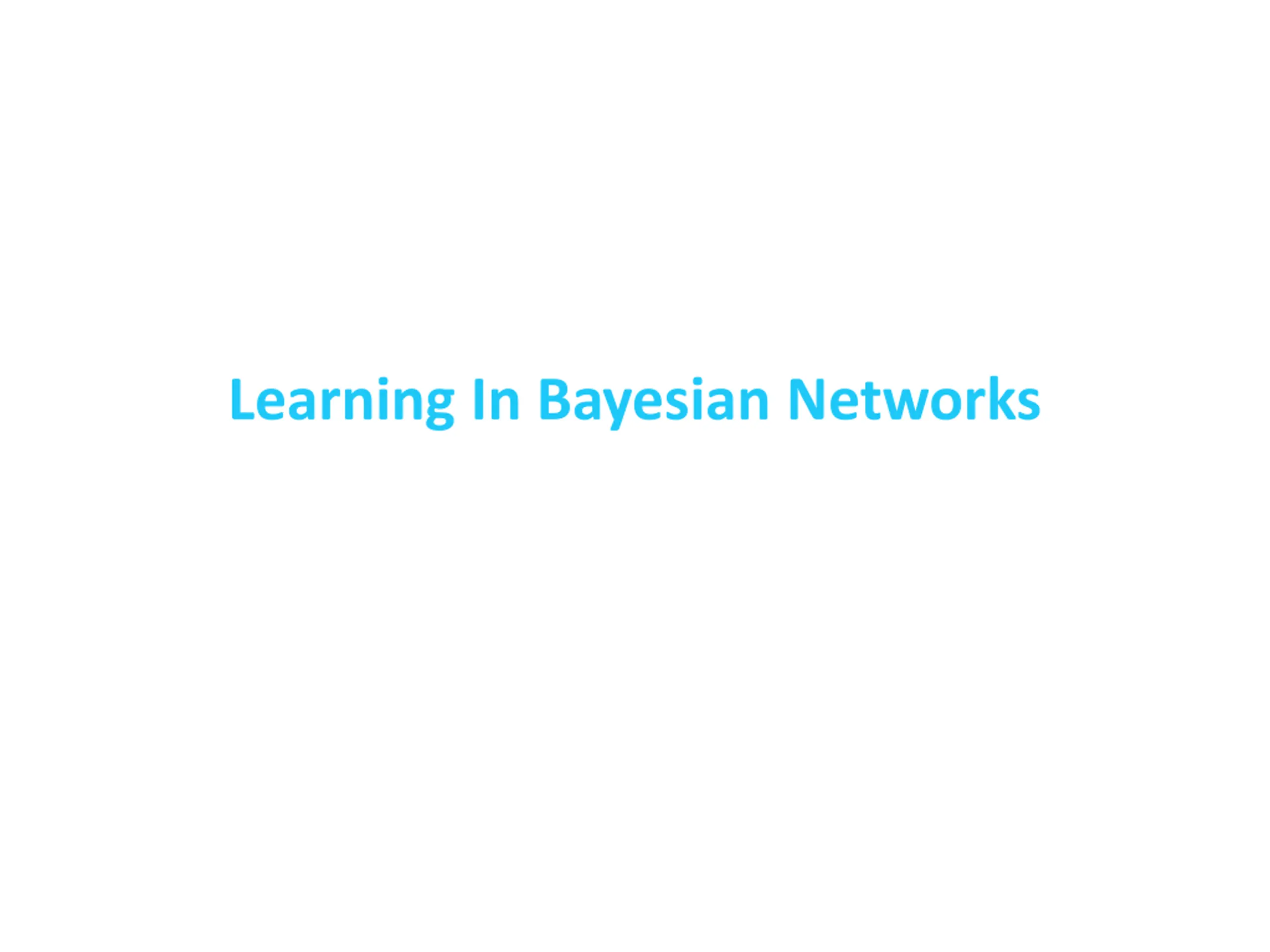 If Network Structure Is Known, The Problem Involves Learning Distributions The distributions are characterized by parameters ? ?. Goal: infer ? ? that best explains the data D. p(q D)~ p(Dq)p(q) Bayesian methods q*= argmaxqp(q D) Maximum a posteriori q*= argmaxqp(Dq) Maximum likelihood e i (e)x\i (e),q) q*= argmaxq log p(xi Max. pseudo-likelihood 1 e Moment matching x(e) )2 q*= argminq(Ep(xq)[x]- | X |