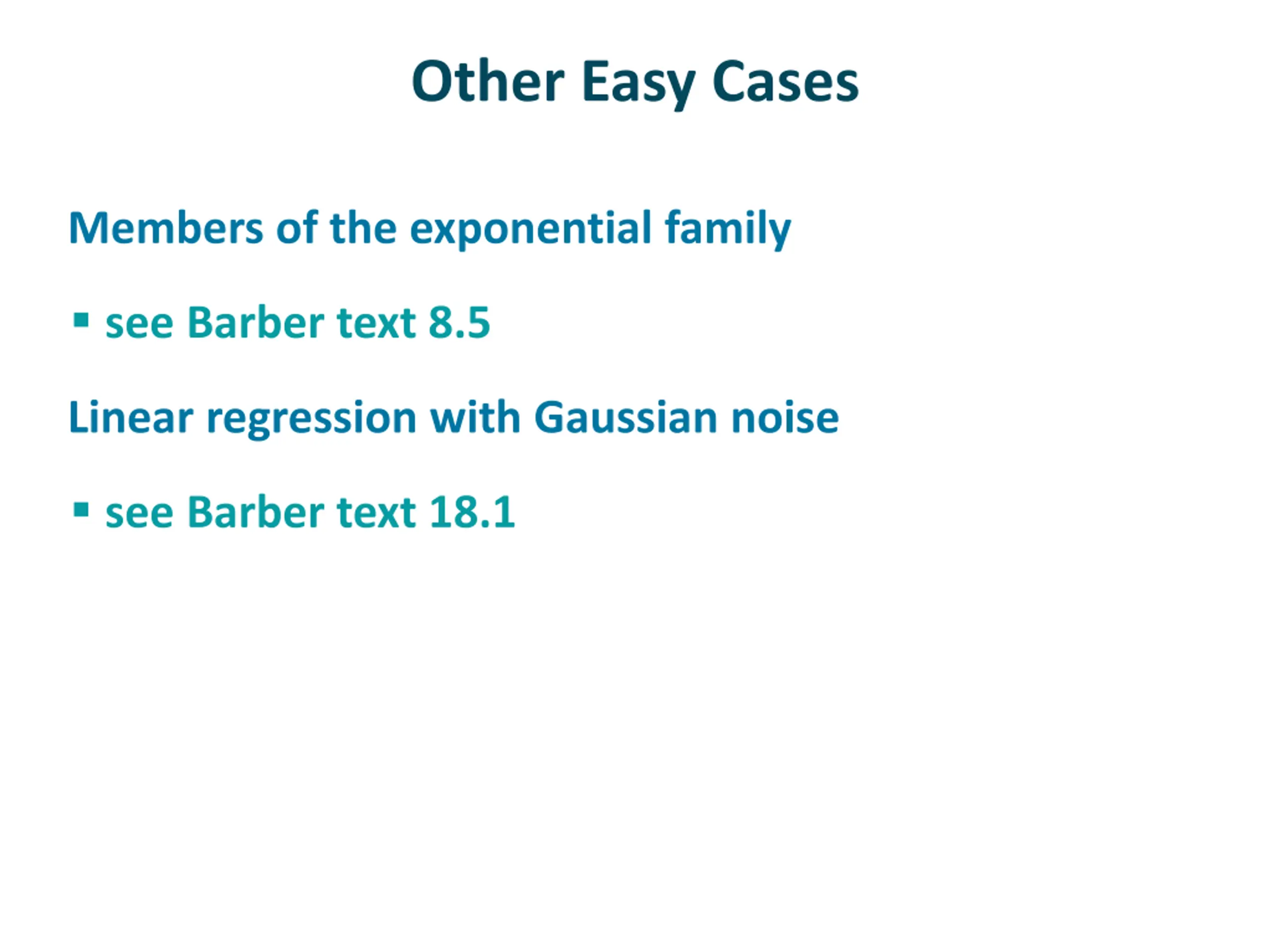 Other Easy Cases Members of the exponential family see Barber text 8.5 Linear regression with Gaussian noise see Barber text 18.1
