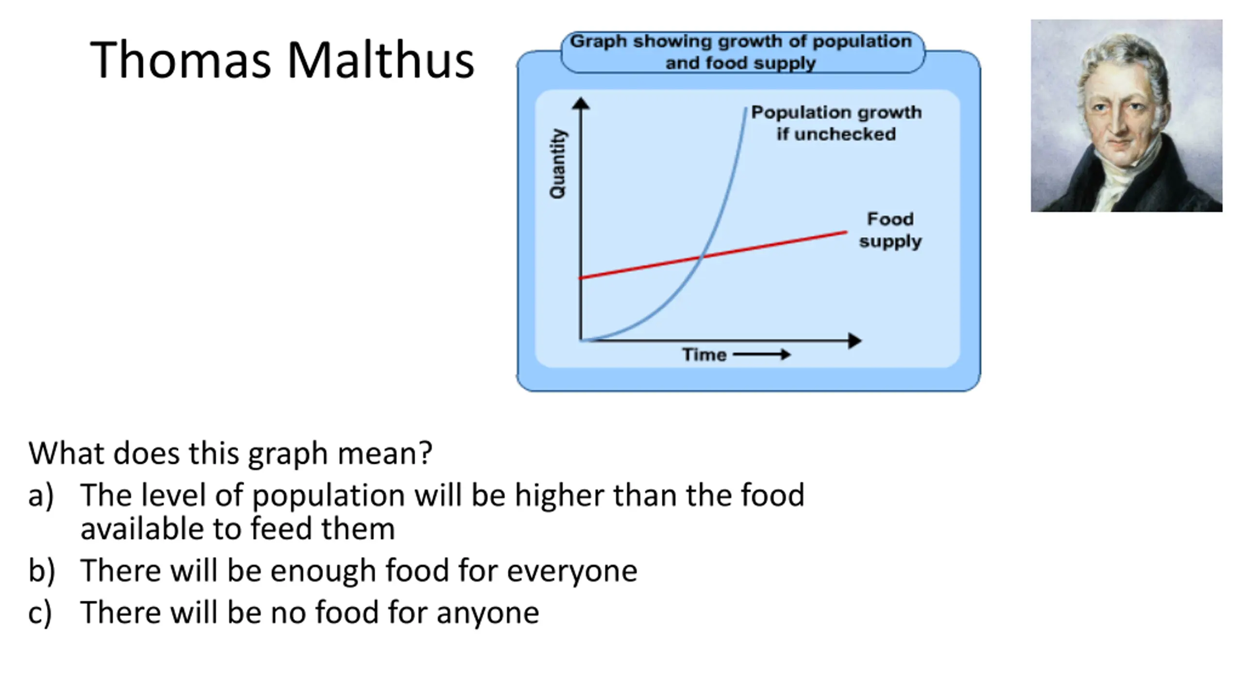 https://kickasshistory.files.wordpress.com/2013/12/thomas-malthus-e1378486464478.jpg?w=560https://kickasshistory.files.wordpress.com/2013/12/thomas-malthus-e1378486464478.jpg?w=560 http://www.s-cool.co.uk/assets/learn_its/alevel/geography/population/population-models/2007-10-19_103737.gif Thomas Malthus What does this graph mean? a) The level of population will be higher than the food available to feed them b) There will be enough food for everyone c) There will be no food for anyone