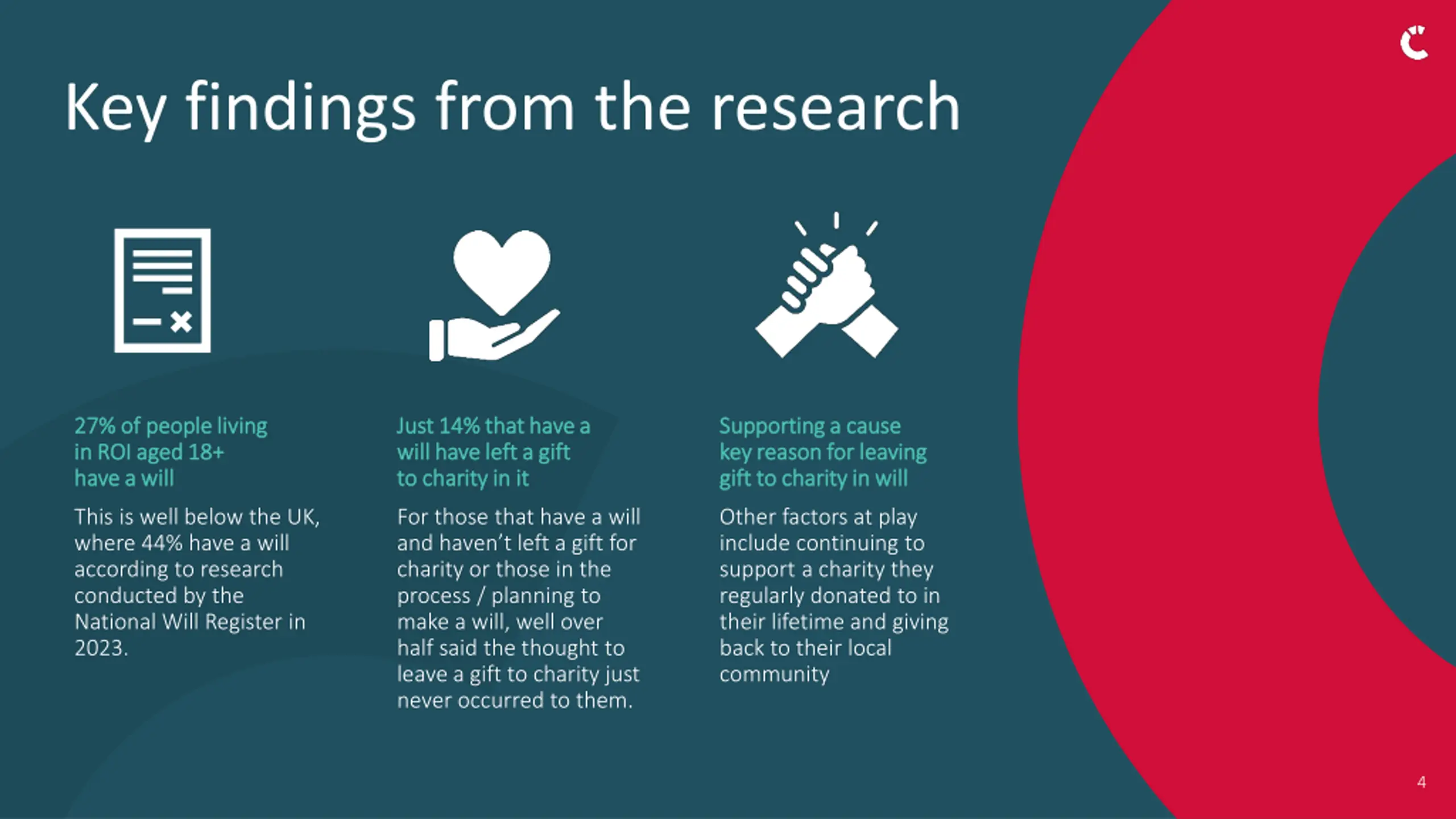 Leaving a gift to charity in a will Findings from an online research with a nationally representative sample of the population in ROI aged 18+ August 2024 August 2024 REF: 740524