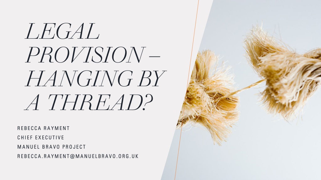 LEGAL PROVISION HANGING BY A THREAD? R E B EC CA R A Y MENT R E B EC CA R A Y MENT C H I E F E X EC U TI V E C H I E F E X EC U TI V E M A NU E L B R A VO P R O JECT M A NU E L B R A VO P R O JECT R E B EC CA . R A YMENT@ MA NUE L BR AV O . O RG . U K R E B EC CA . R A YMENT@ MA NUE L BR AV O . O RG . U K