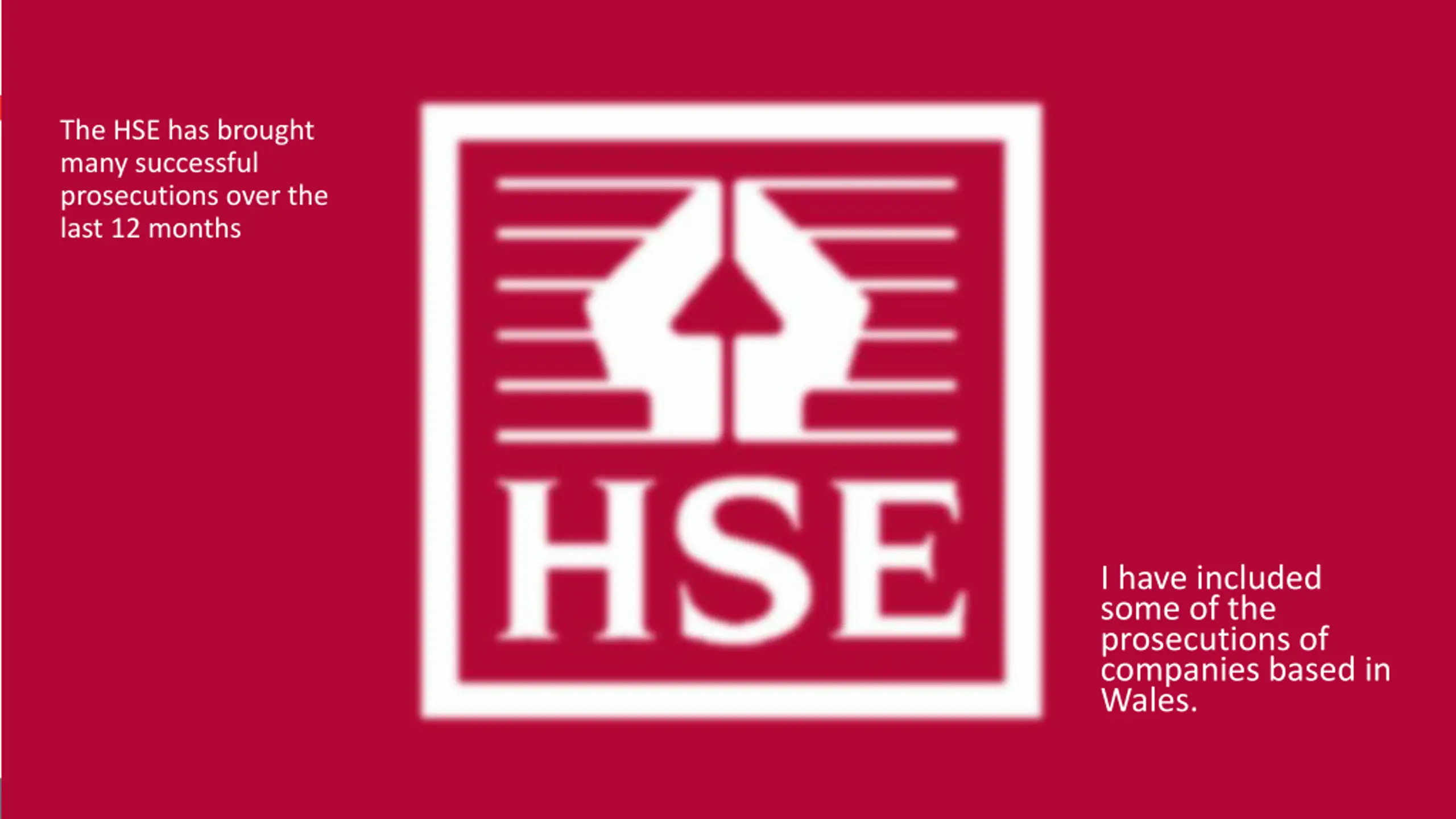 The HSE has brought many successful prosecutions over the last 12 months I have included some of the prosecutions of companies based in Wales.