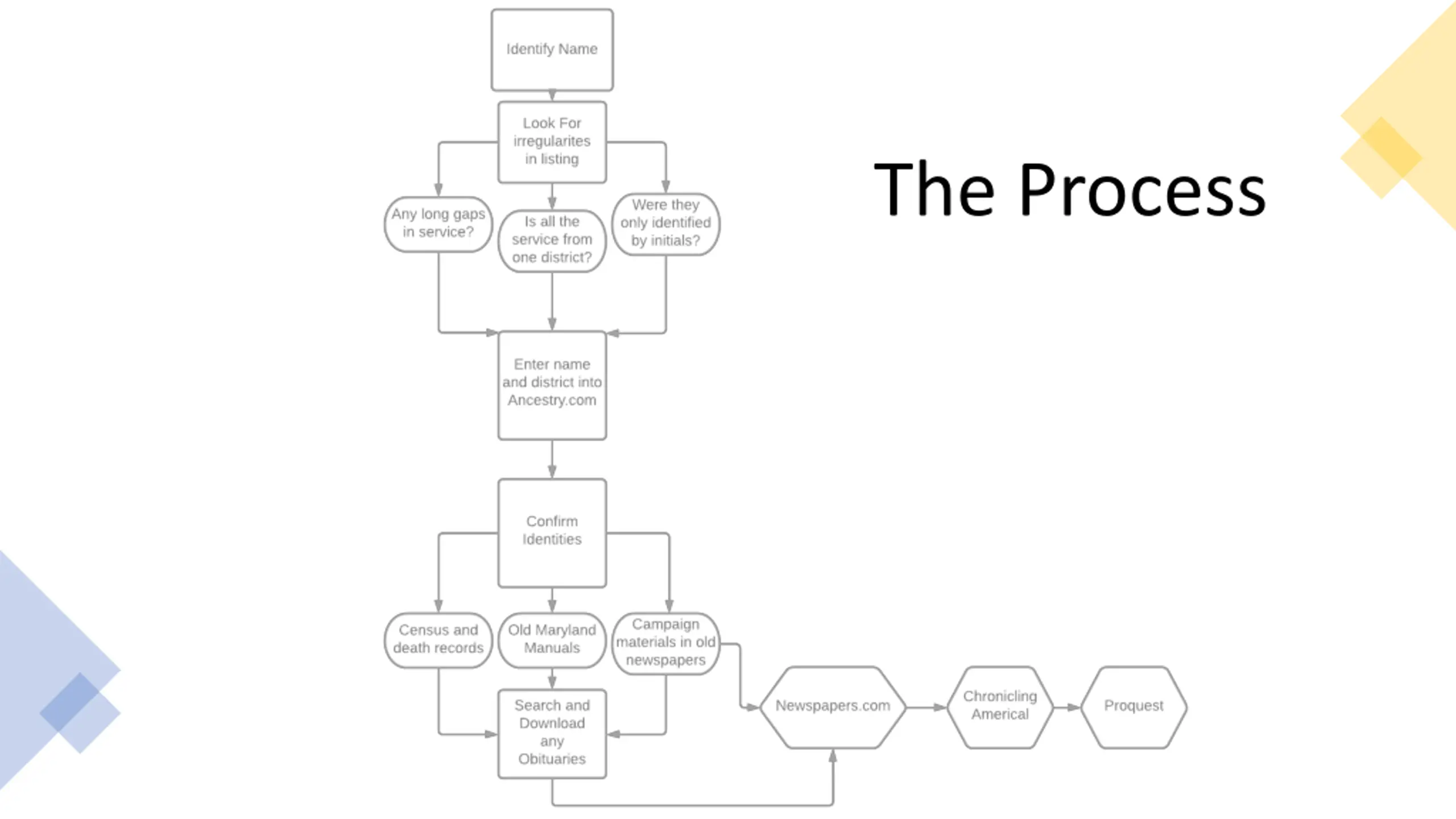 Applications New, up-to-date authoritative resource for Maryland politics. Most recent resource is 31 years old and involved little to no identity verification. Valuable research resource for political science and history researchers. Model project for developing internal research resources, especially data that is specific to the history of an institution and will likely not be compiled elsewhere. Model digitization project for turning an analog resource into a new format that allows for more robust searching. Demonstration of nontraditional use of an electronic resource that would normally have little to no use for our needs. Will serve as a tool for organizing future research into the General Assembly membership, allowing for compiling and cross-referencing of data.