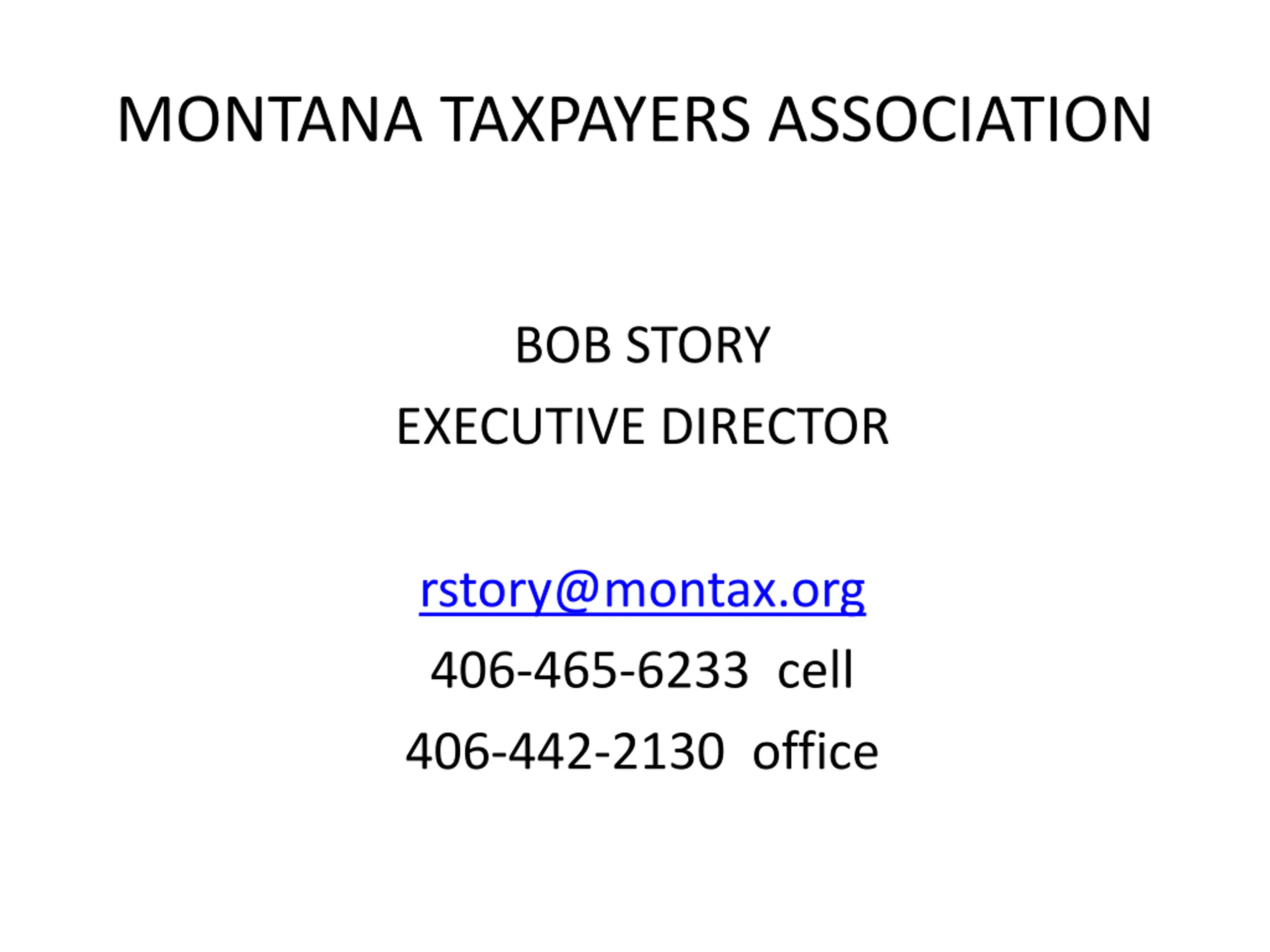 MONTANA TAXPAYERS ASSOCIATION BOB STORY EXECUTIVE DIRECTOR rstory@montax.org 406-465-6233 cell 406-442-2130 office