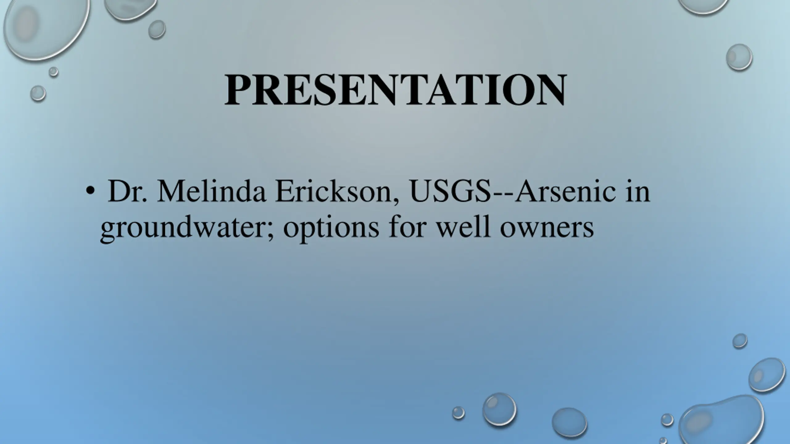 PRESENTATION Dr. Melinda Erickson, USGS--Arsenic in groundwater; options for well owners