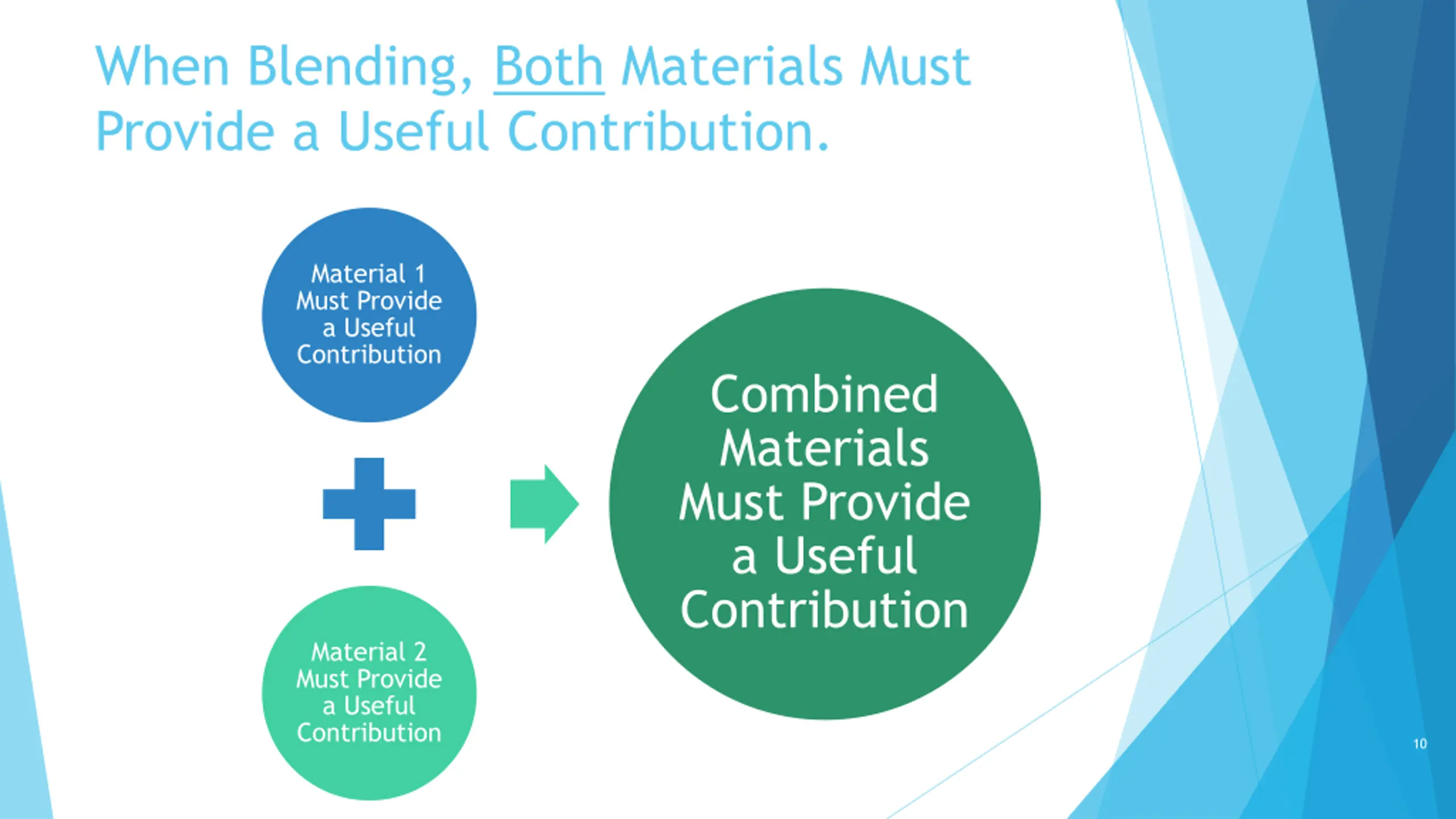 When Blending, Both Materials Must Provide a Useful Contribution. Material 1 Must Provide a Useful Contribution Combined Materials Must Provide a Useful Contribution Material 2 Must Provide a Useful Contribution 10