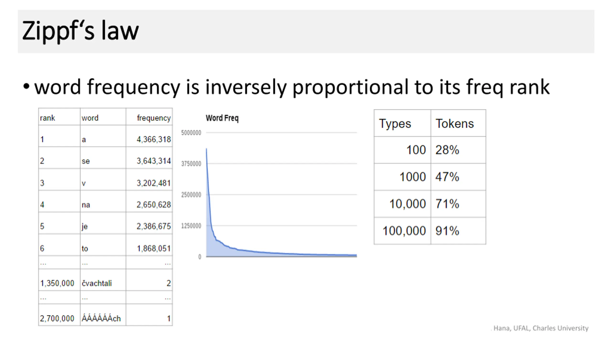 Zippfs Zippf s law law word frequency is inversely proportional to its freq rank J. Hana, UFAL, Charles University