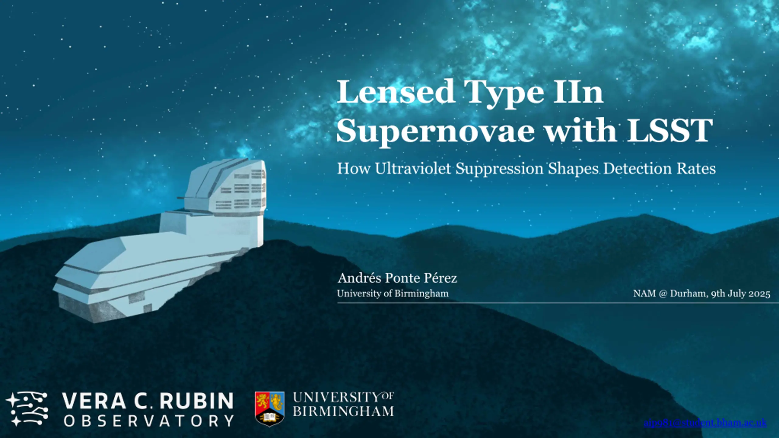 Lensed Type IIn Supernovae with LSST How Ultraviolet Suppression Shapes Detection Rates Andr s Ponte P rez University of Birmingham NAM @ Durham, 9th July 2025 aip981@student.bham.ac.uk