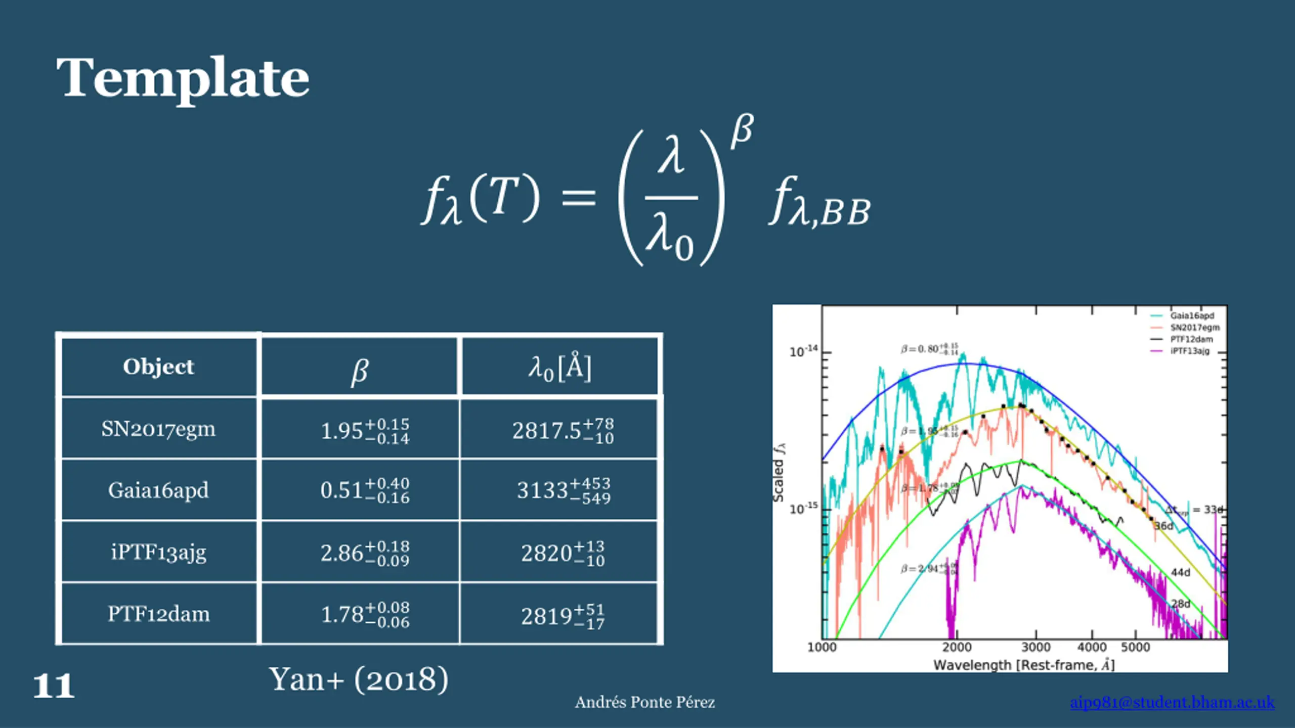 Template ? ? ?0 ??? = ??,?? ?0[ ] Object ? +78 SN2017egm +0.15 2817.5 10 1.95 0.14 +0.40 +453 Gaia16apd 0.51 0.16 3133 549 +0.18 +13 iPTF13ajg 2.86 0.09 2820 10 +0.08 PTF12dam +51 1.78 0.06 2819 17 11 Yan+ (2018) Andr s Ponte P rez aip981@student.bham.ac.uk
