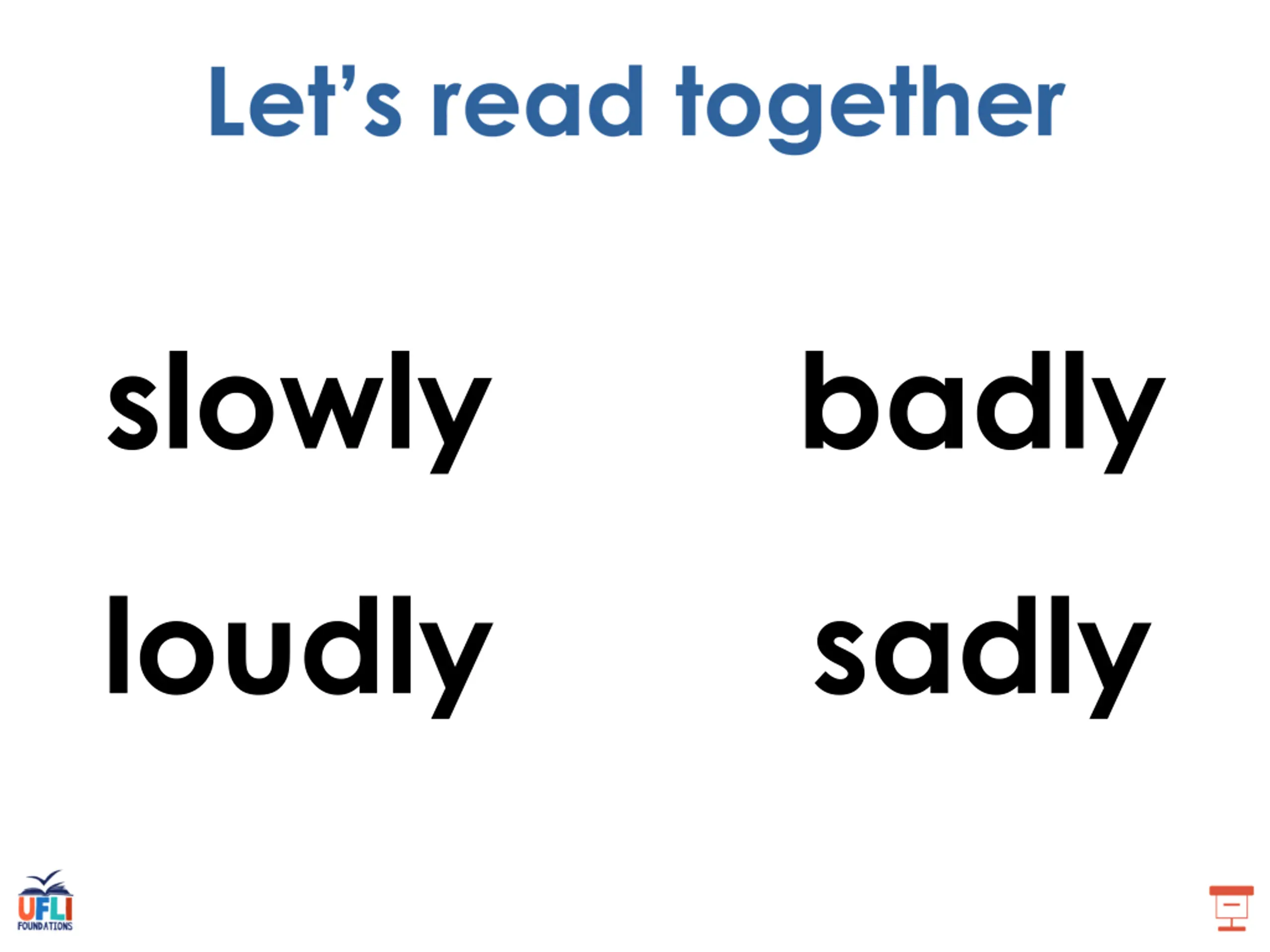 -ly like or manner of Tom drives slowly. Shane screams loudly.