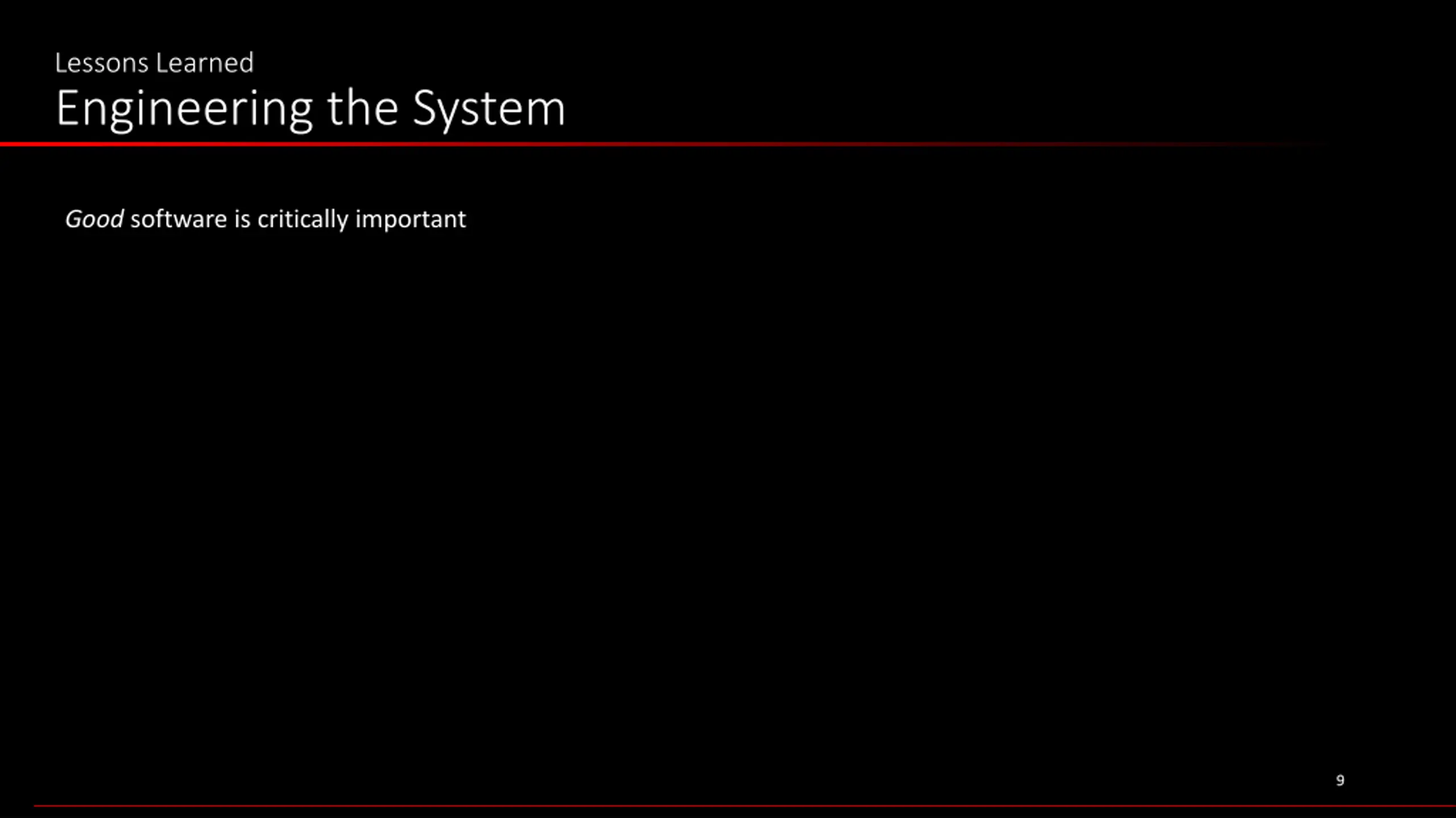 Lessons Learned Engineering the System Good software is critically important 9 9