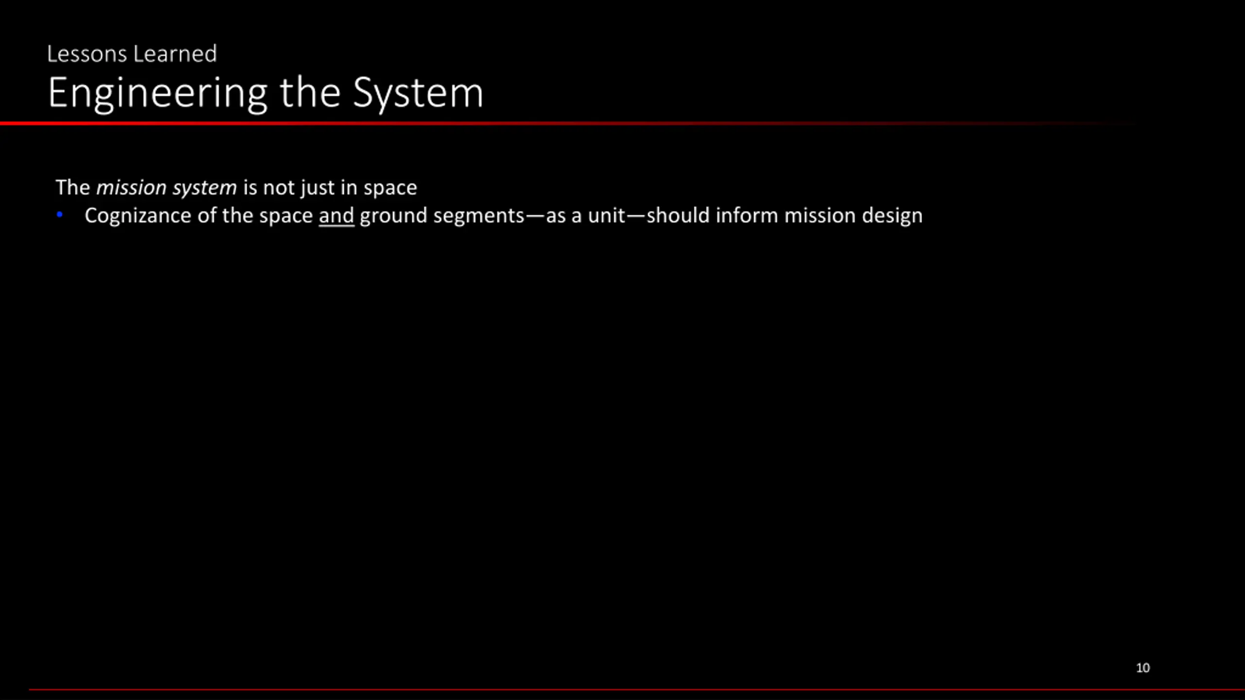 Lessons Learned Engineering the System The mission system is not just in space Cognizance of the space and ground segments as a unit should inform mission design 10 10