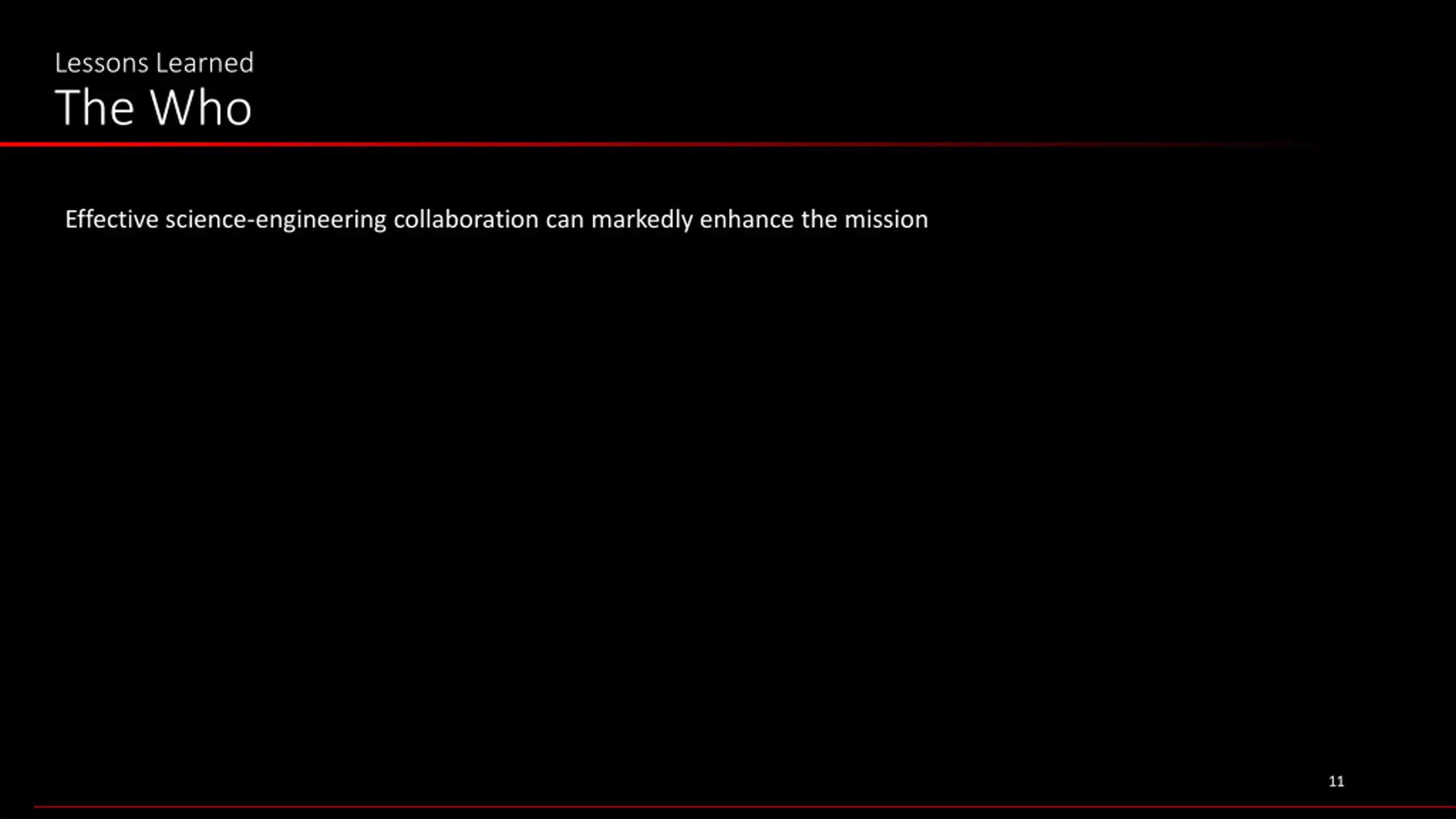 Lessons Learned The Who Effective science-engineering collaboration can markedly enhance the mission 11 11