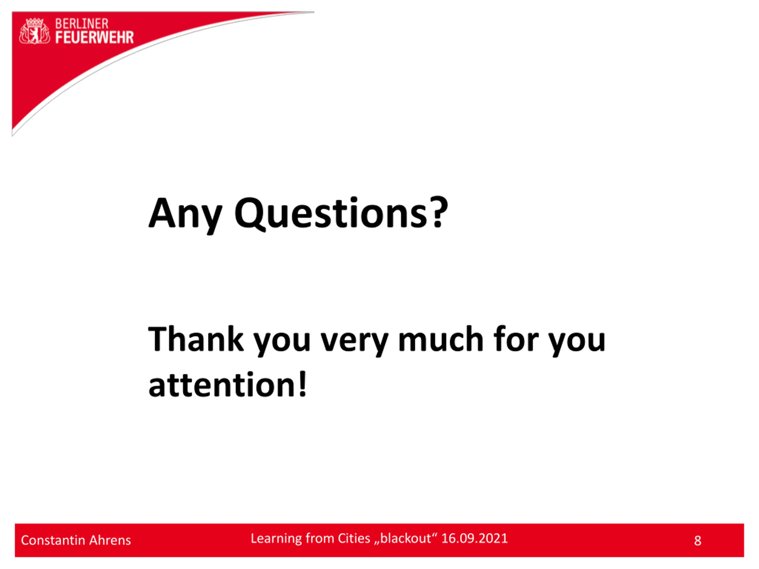 Any Questions? Thank you very much for you attention! Learning from Cities blackout 16.09.2021 Constantin Ahrens 8