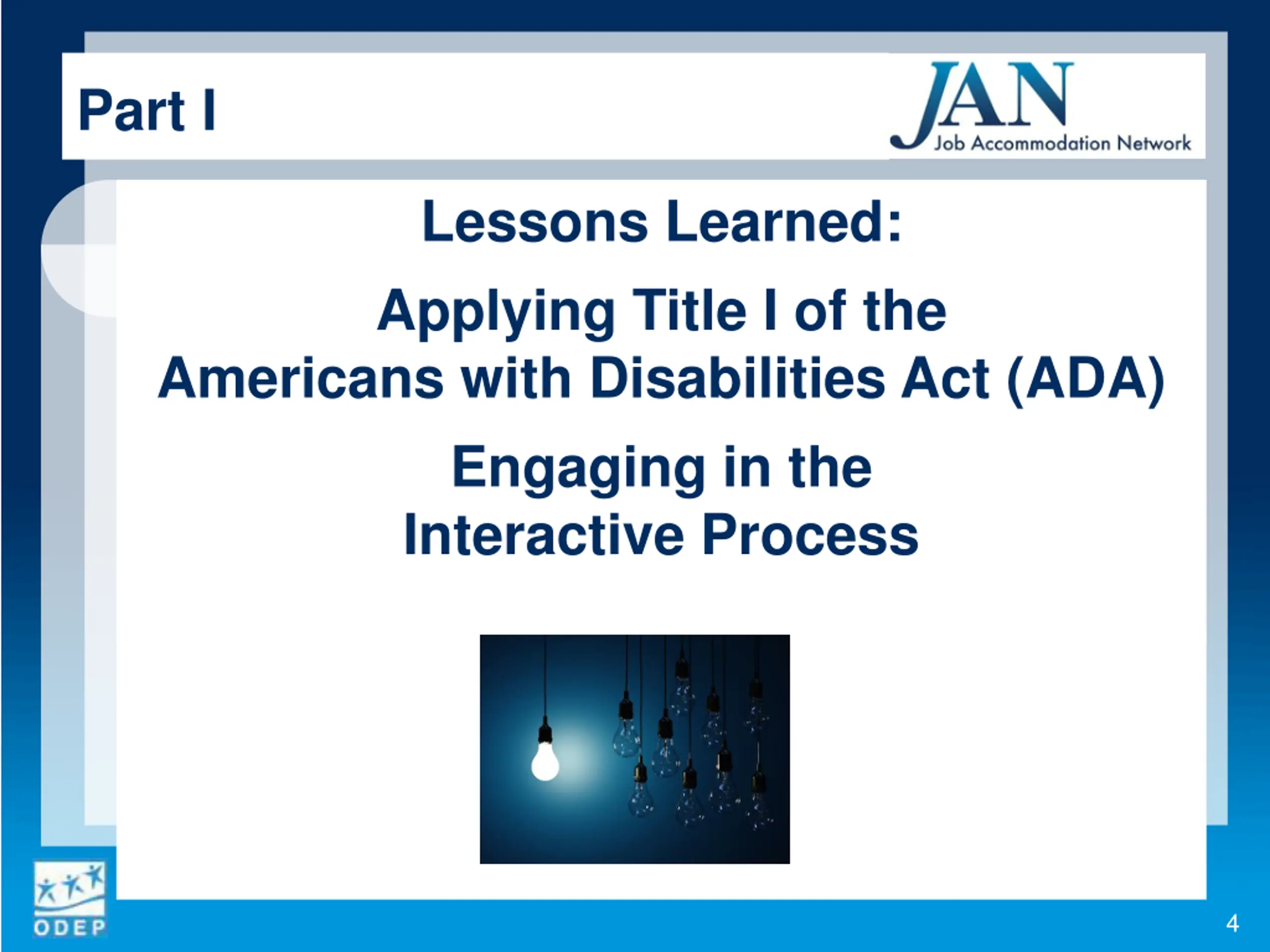 Part I Lessons Learned: Applying Title I of the Americans with Disabilities Act (ADA) Engaging in the Interactive Process 4