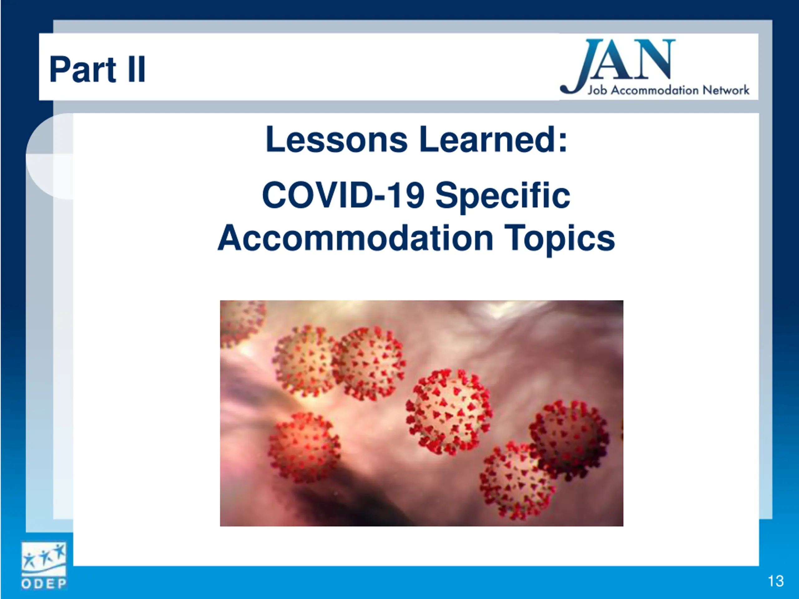 Part II Lessons Learned: COVID-19 Specific Accommodation Topics 13