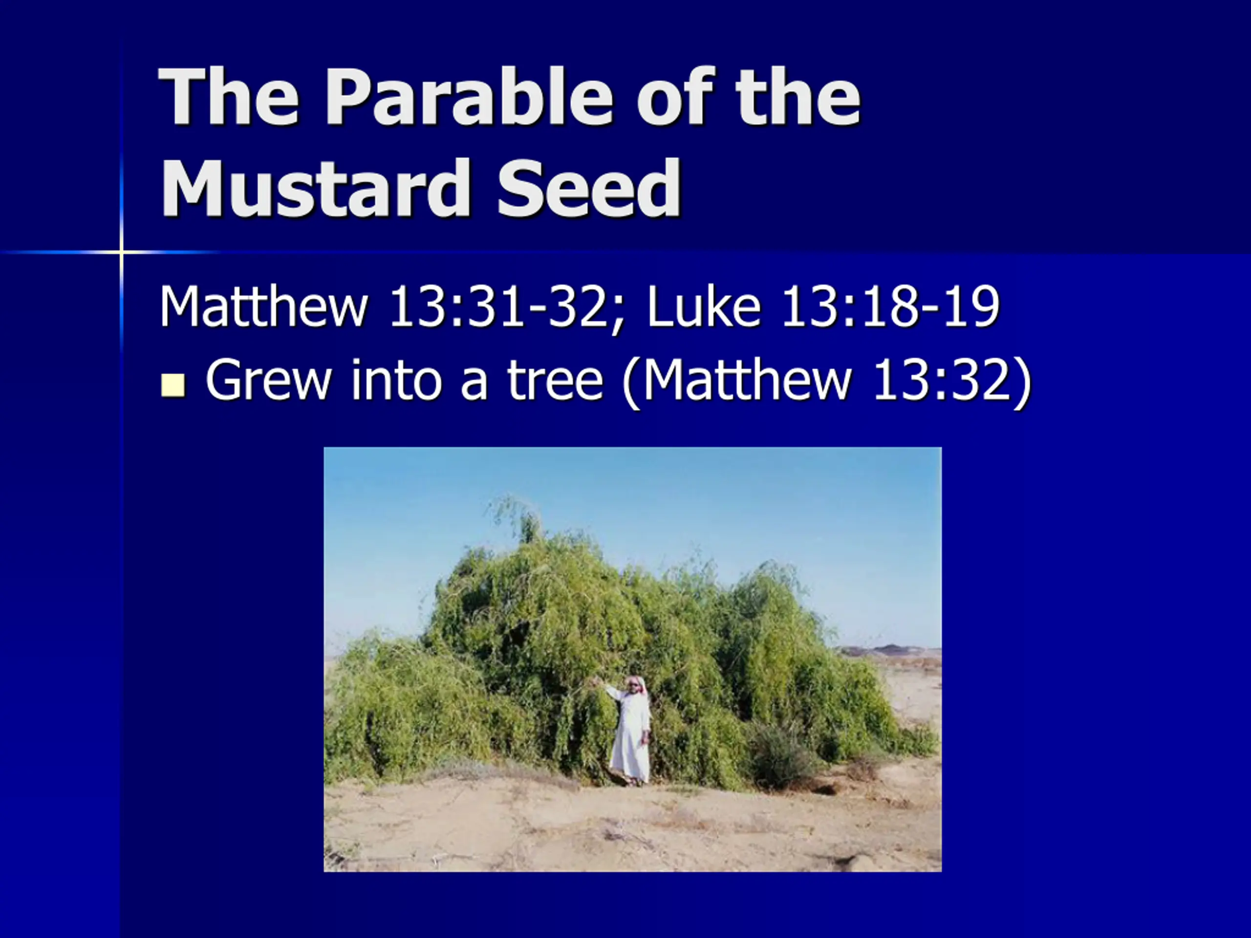 The Parable of the Mustard Seed Matthew 13:31-32; Luke 13:18-19 Grew into a tree (Matthew 13:32)
