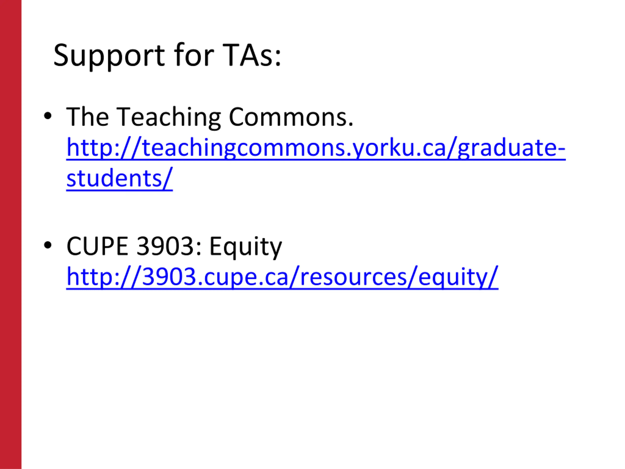 Support for TAs: The Teaching Commons. http://teachingcommons.yorku.ca/graduate- students/ CUPE 3903: Equity http://3903.cupe.ca/resources/equity/