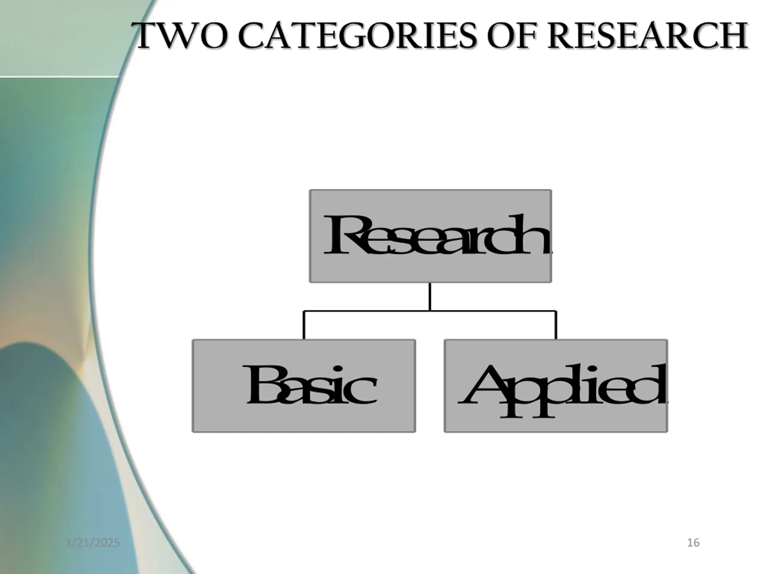 TWO CATEGORIES OF RESEARCH R e se a rc h B a sic A p p lie d 3/21/2025 16