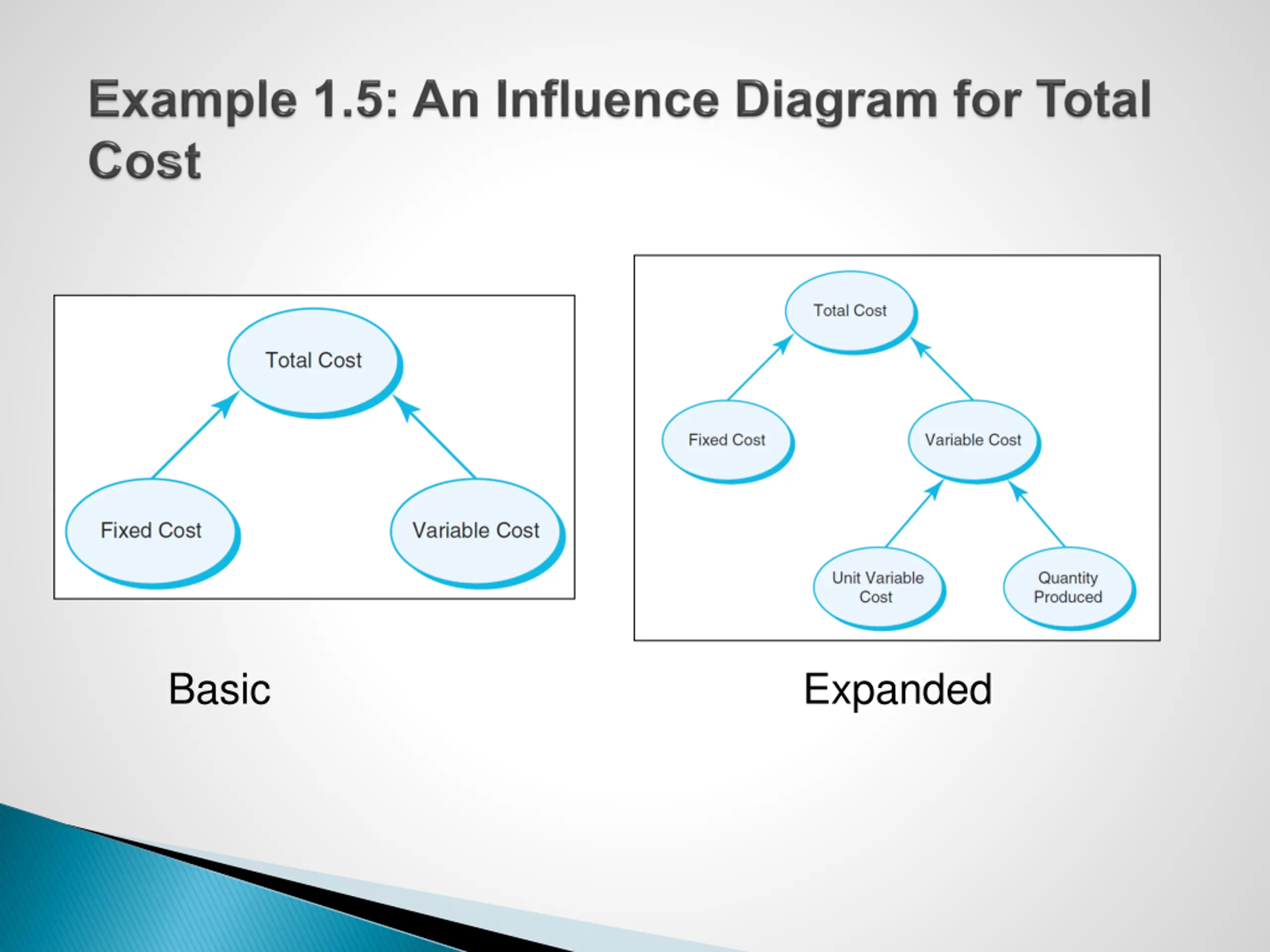 Influence diagram - a visual representation of a descriptive model that shows how the elements of the model influence, or relate to, others. An influence diagram is a useful approach for conceptualizing the structure of a model and can assist in building a mathematical or spreadsheet model.
