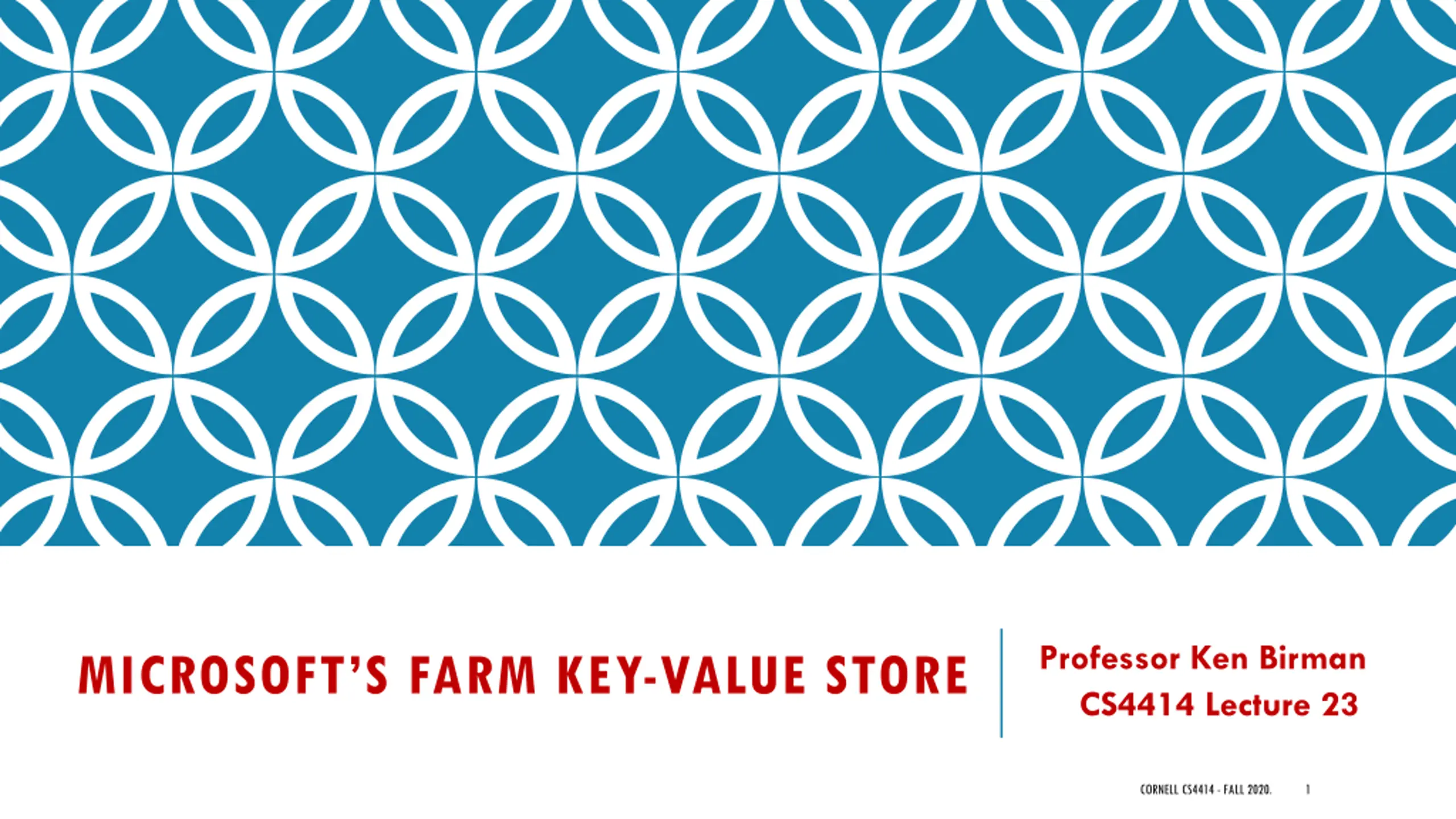 Professor Ken Birman CS4414 Lecture 23 MICROSOFT S FARM KEY-VALUE STORE CORNELL CS4414 - FALL 2020. 1