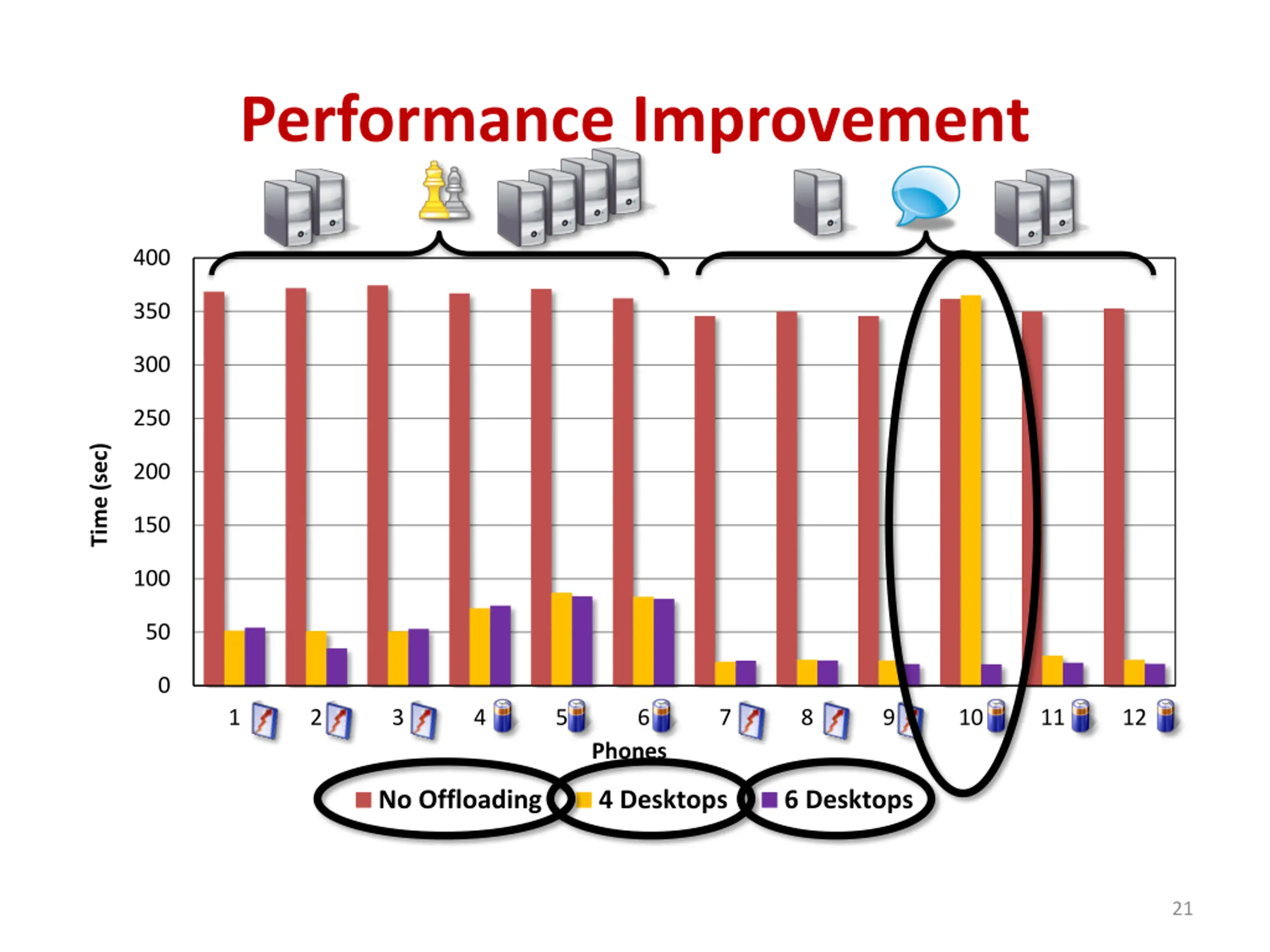 Performance Improvement 400 350 300 250 Time (sec) 200 150 100 50 0 1 2 3 4 5 6 7 8 9 10 11 12 Phones No Offloading 4 Desktops 6 Desktops 21