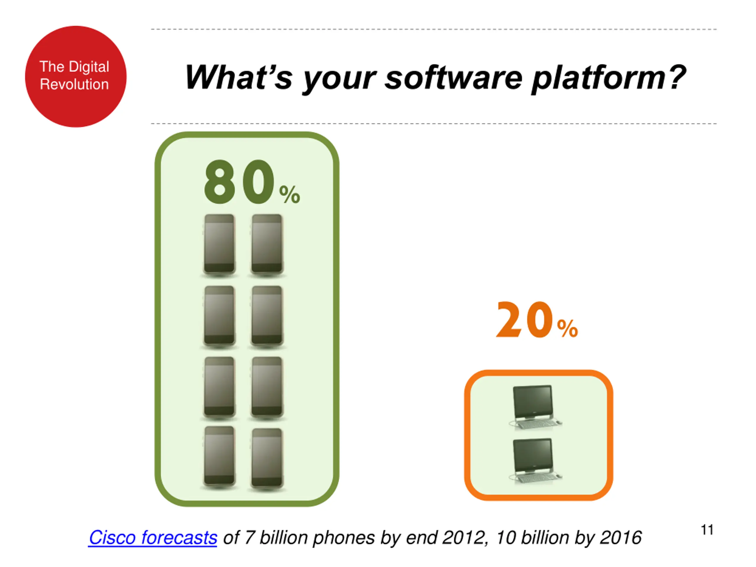 Two Kinds Of Two Kinds Of Social Media The Digital Revolution What s your software platform? 80% 20% 11 Cisco forecasts of 7 billion phones by end 2012, 10 billion by 2016