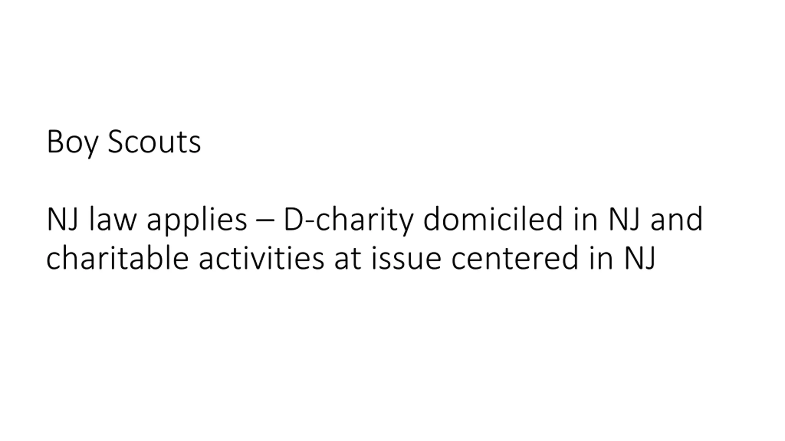 Boy Scouts NJ law applies D-charity domiciled in NJ and charitable activities at issue centered in NJ