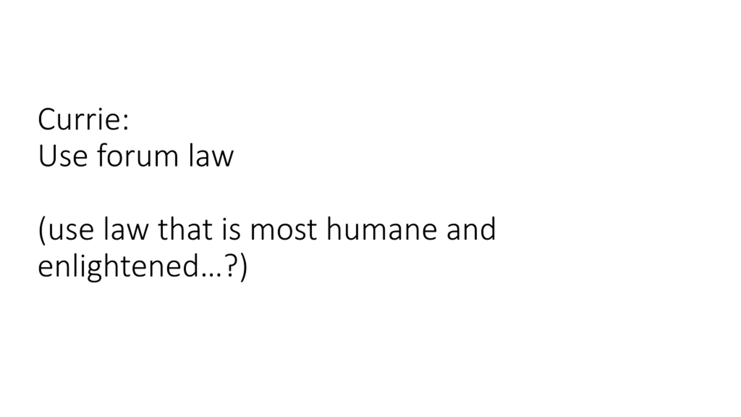 Currie: Use forum law (use law that is most humane and enlightened ?)