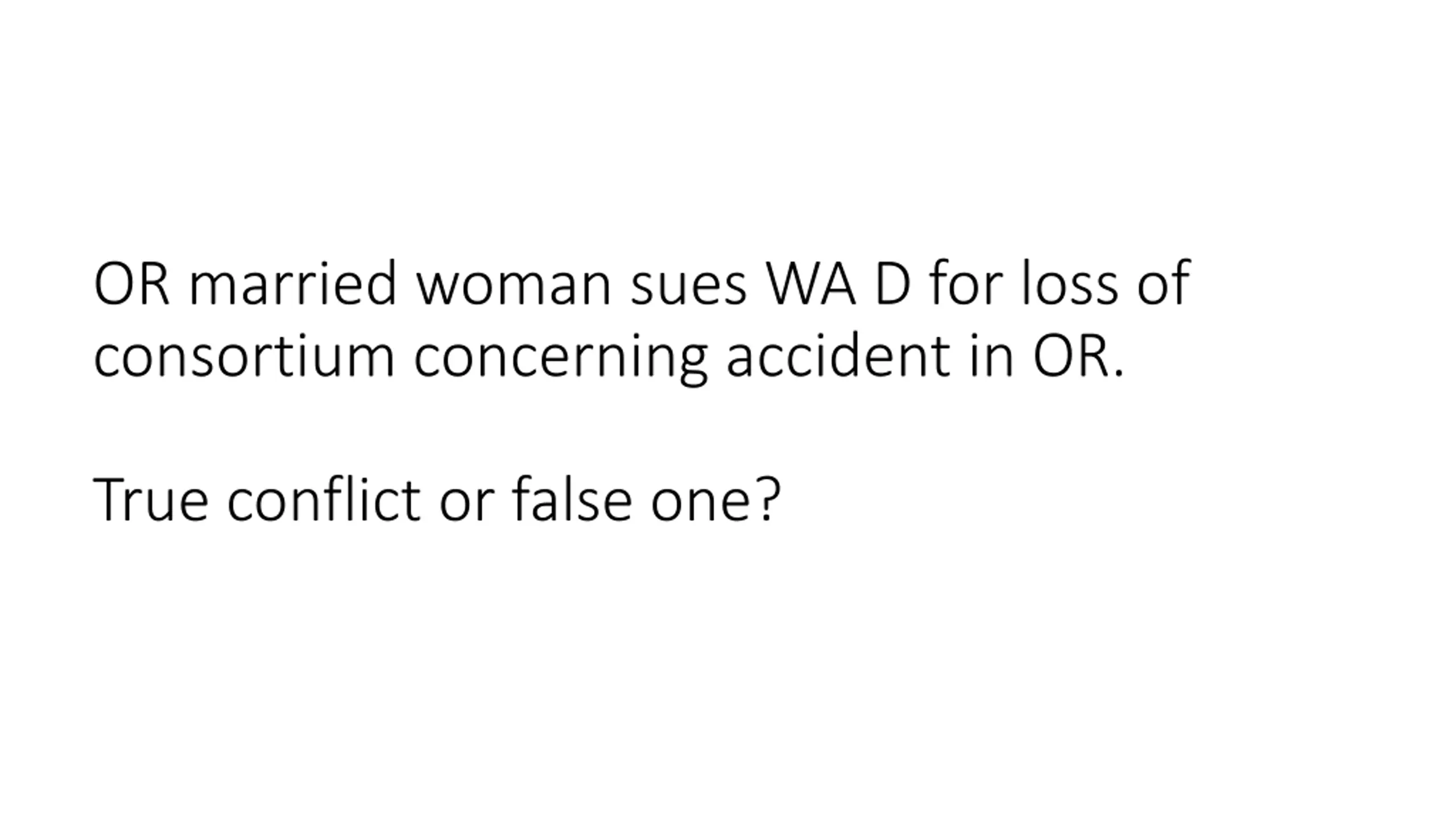 OR married woman sues WA D for loss of consortium concerning accident in OR. True conflict or false one?