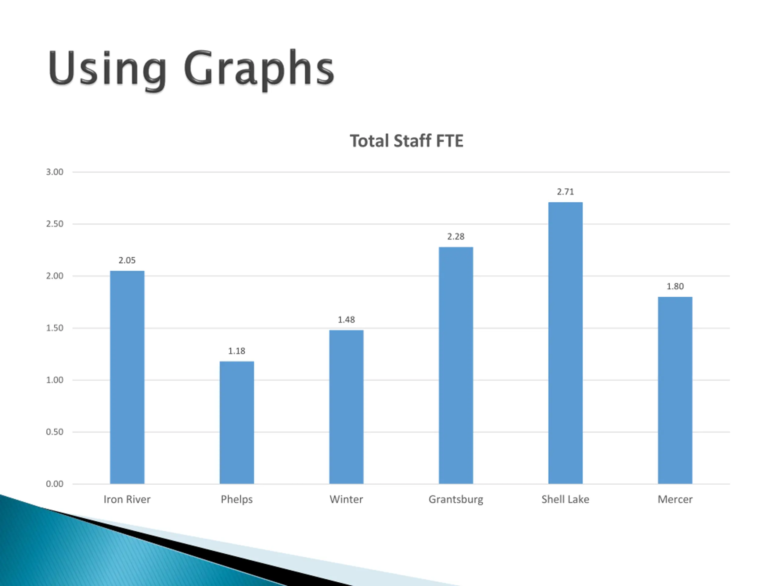 Total Staff FTE 3.00 2.71 2.50 2.28 2.05 2.00 1.80 1.48 1.50 1.18 1.00 0.50 0.00 Iron River Phelps Winter Grantsburg Shell Lake Mercer
