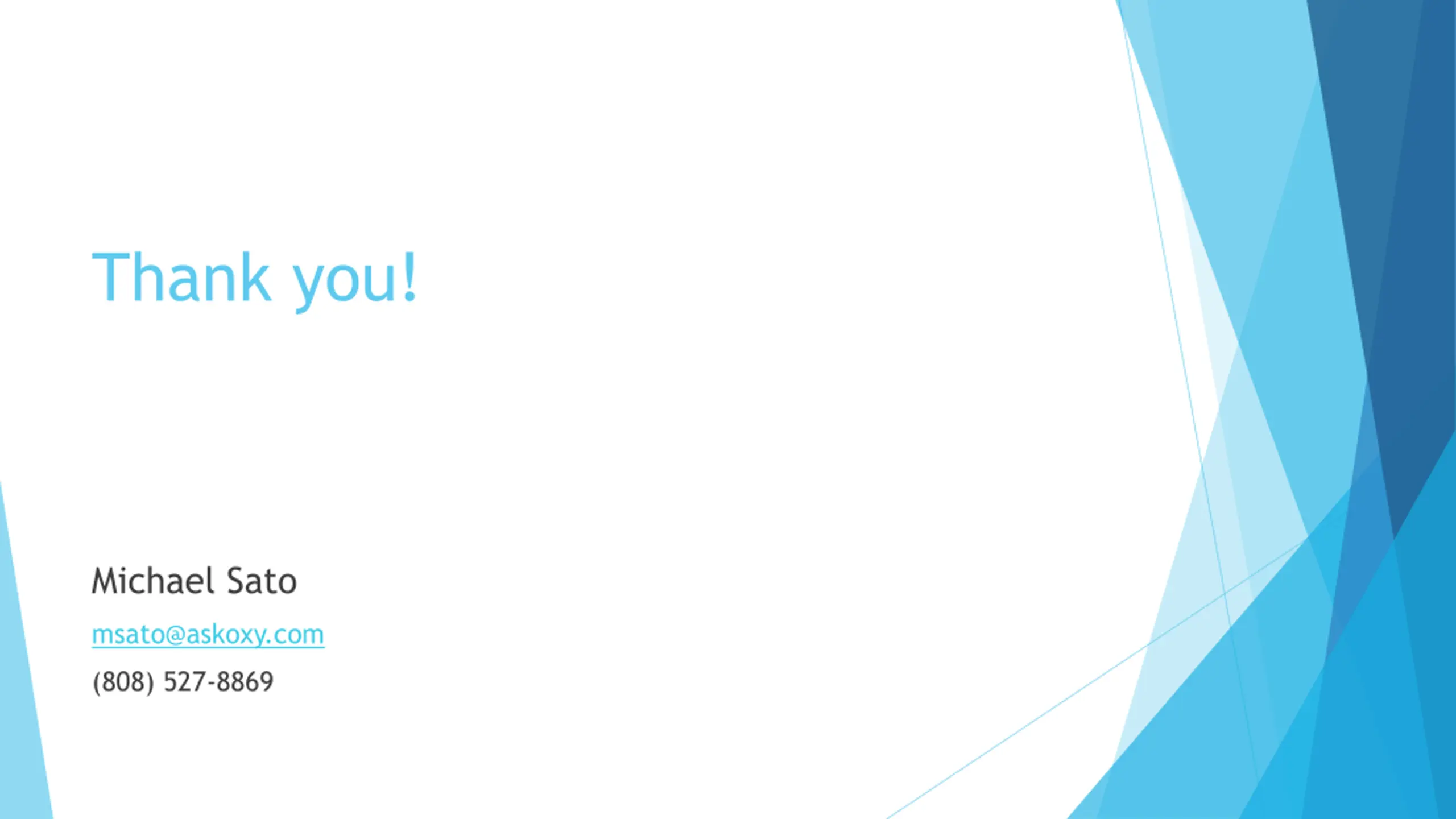 Thank you! Michael Sato msato@askoxy.com (808) 527-8869