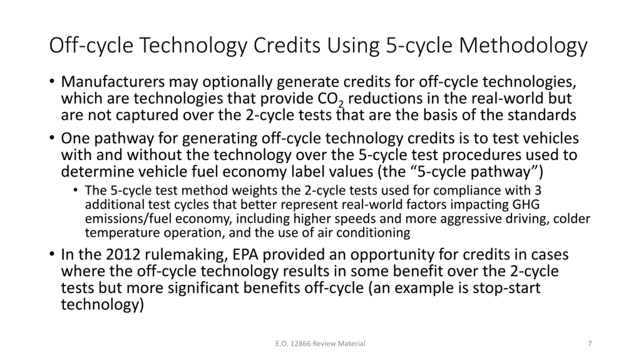 2. Off 2. Off- -cycle Technology Credits cycle Technology Credits E.O. 12866 Review Material 6
