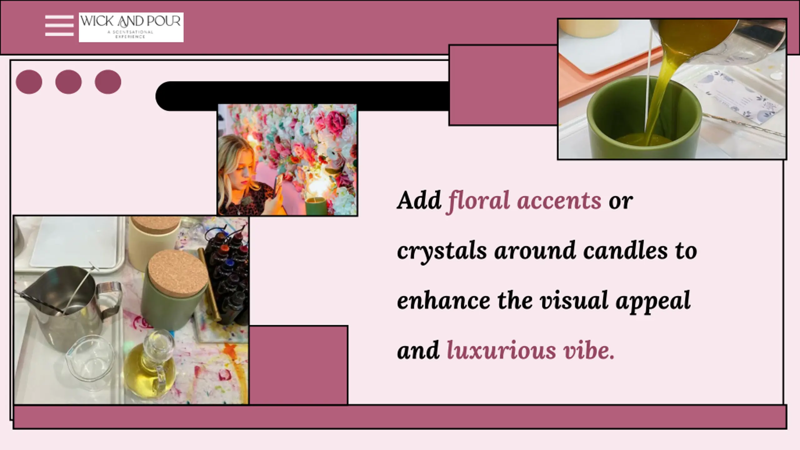 Craft personalized candles, choosing exquisite fragrances and elegant vessels for your unique style.