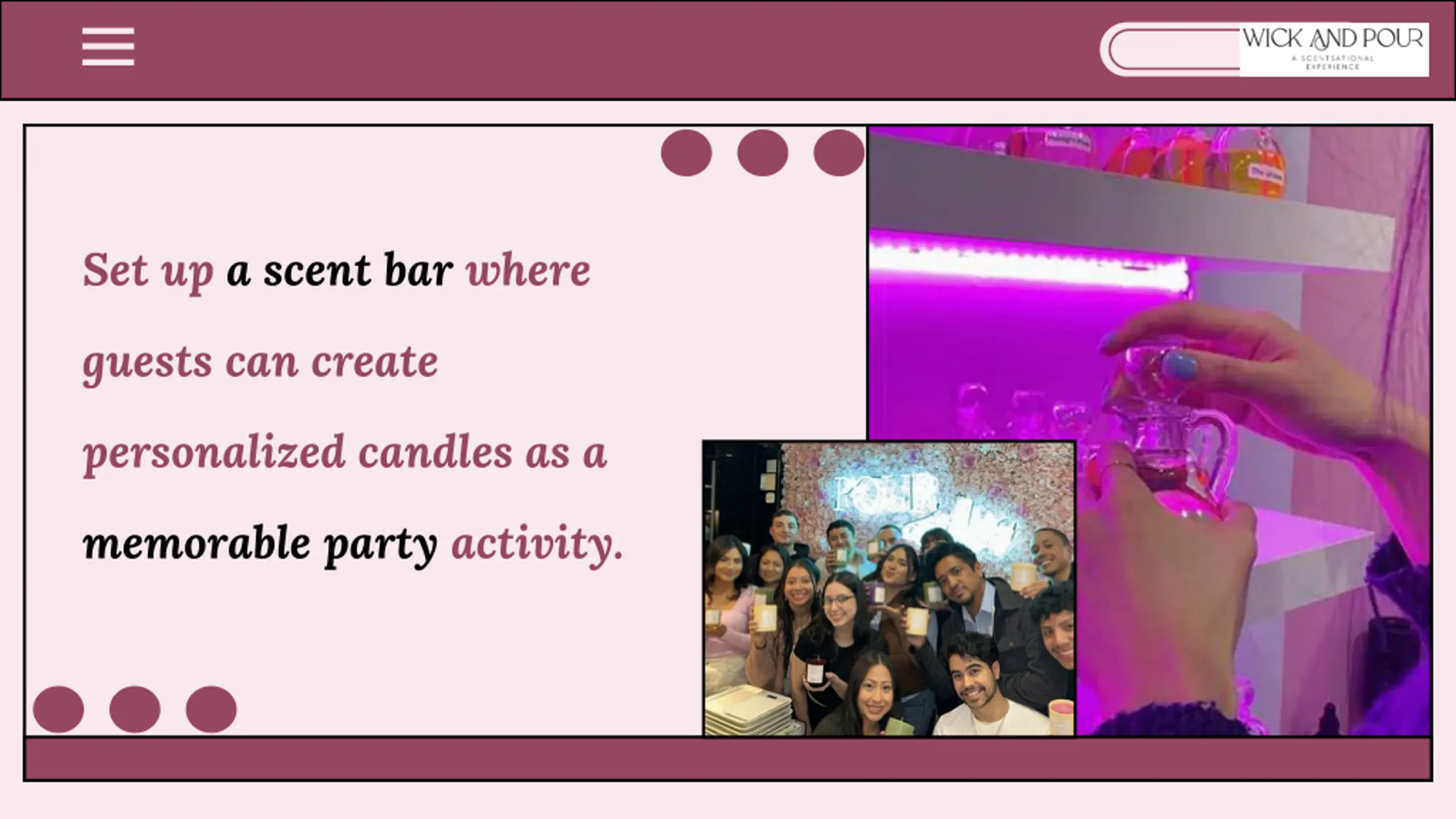 Set up a scent bar where guests can create personalized candles as a memorable party activity.