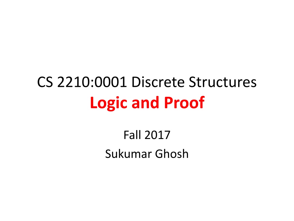 CS 2210:0001 Discrete Structures Logic and Proof Fall 2017 Sukumar Ghosh