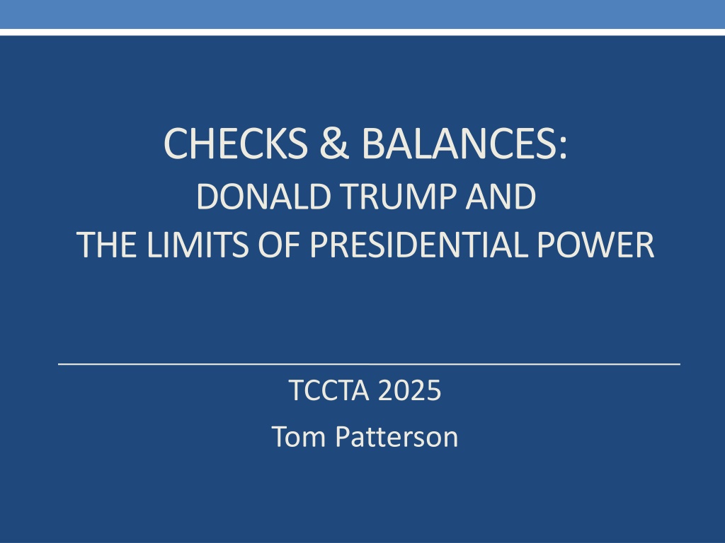 CHECKS & BALANCES: DONALD TRUMP AND THE LIMITS OF PRESIDENTIAL POWER TCCTA 2025 Tom Patterson