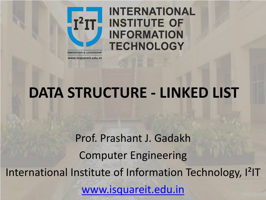 DATA STRUCTURE - LINKED LIST Prof. Prashant J. Gadakh Computer Engineering International Institute of Information Technology, I IT www.isquareit.edu.in