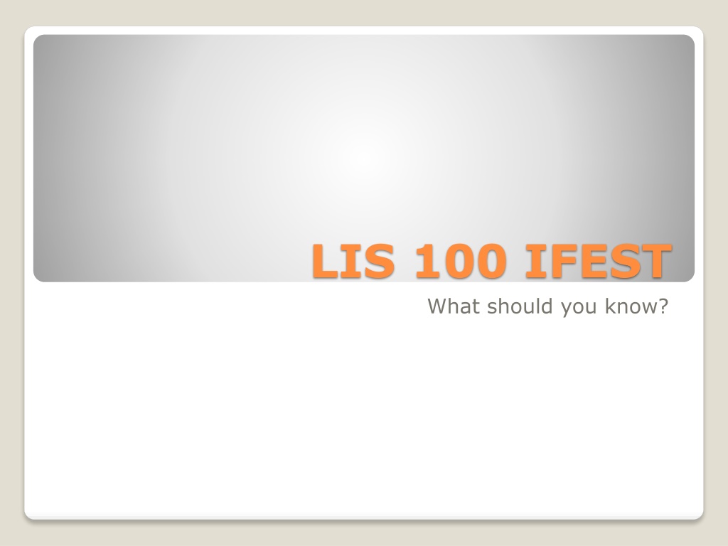 Discover essential details regarding the LIS 100 iFest event. Gain insights into what knowledge is crucial for participation and engagement. Prepare yourself with the necessary information to make the most of this experience and enhance your understanding of LIS topics.