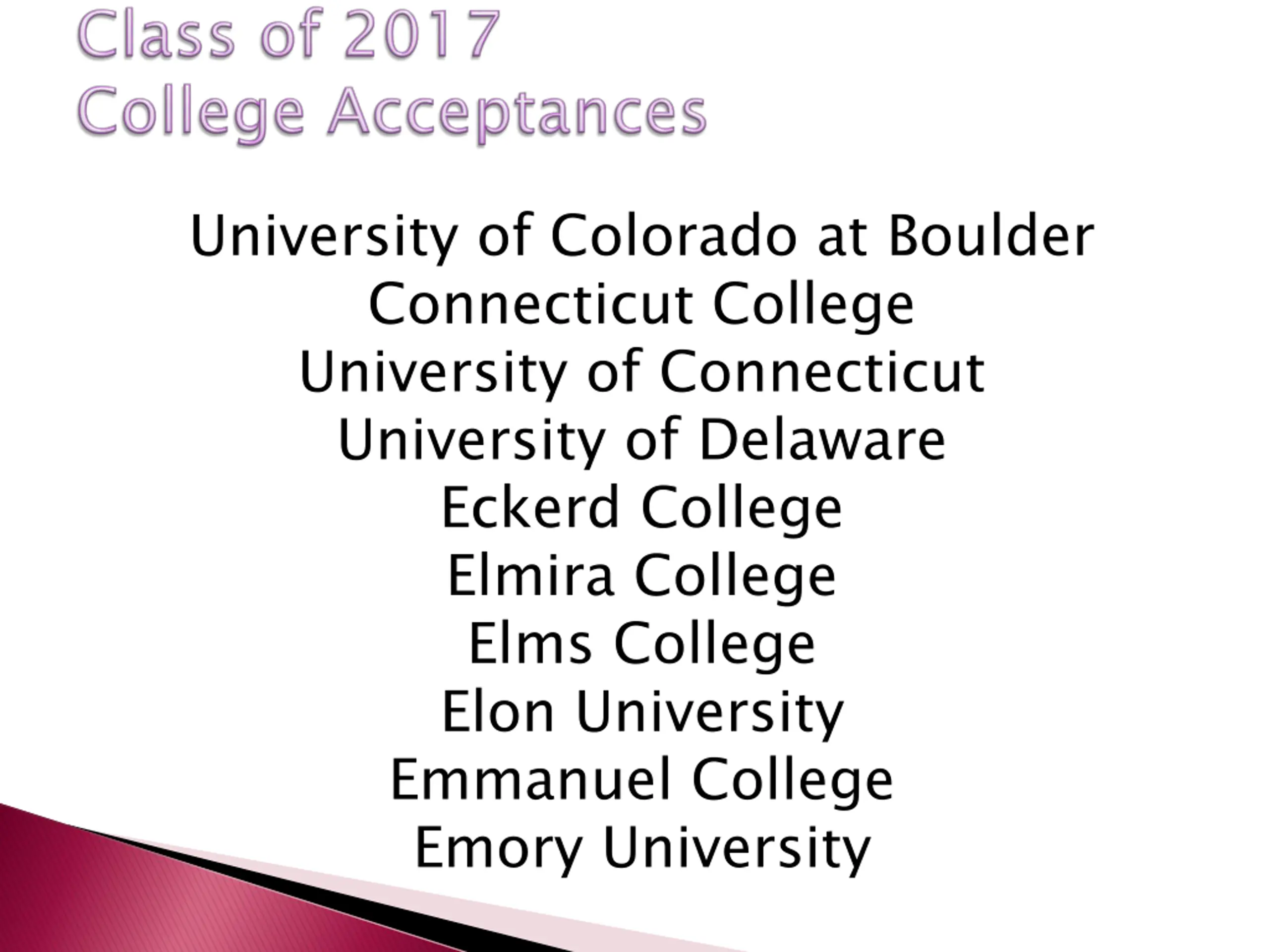 University of Colorado at Boulder Connecticut College University of Connecticut University of Delaware Eckerd College Elmira College Elms College Elon University Emmanuel College Emory University