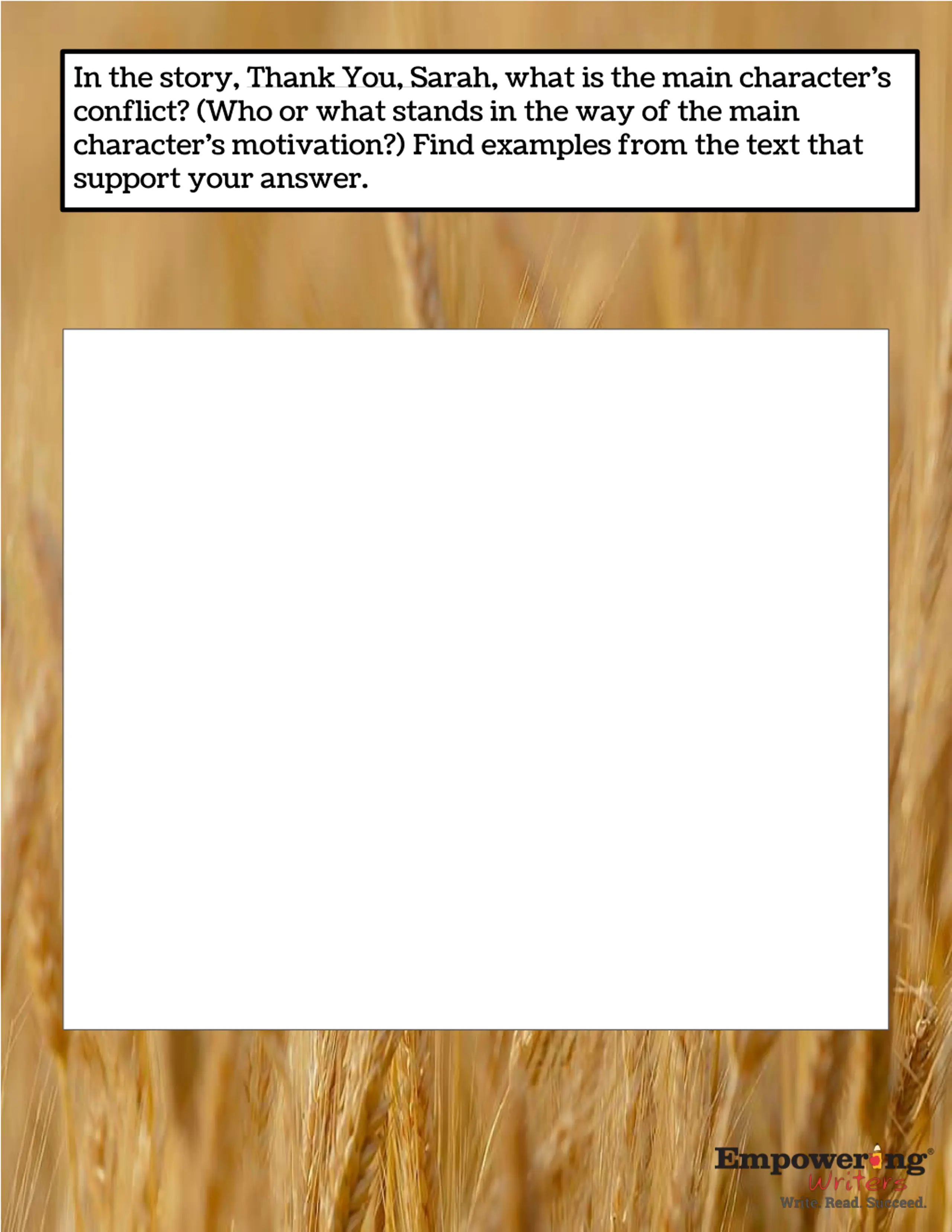 In the story, Thank You, Sarah, what is the main characters conflict? (Who or what stands in the way of the main character s motivation?) Find examples from the text that support your answer.