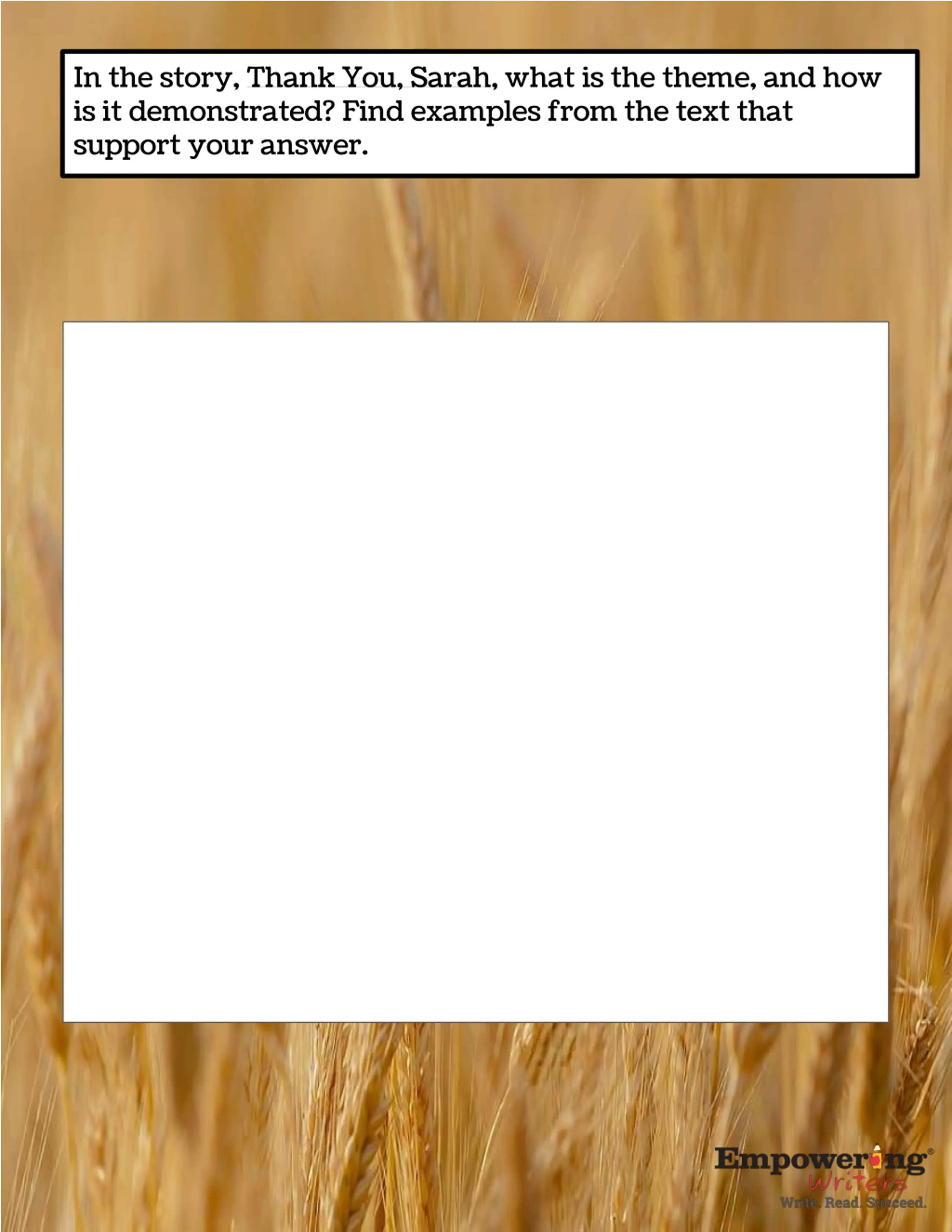 In the story, Thank You, Sarah, what is the theme, and how is it demonstrated? Find examples from the text that support your answer.