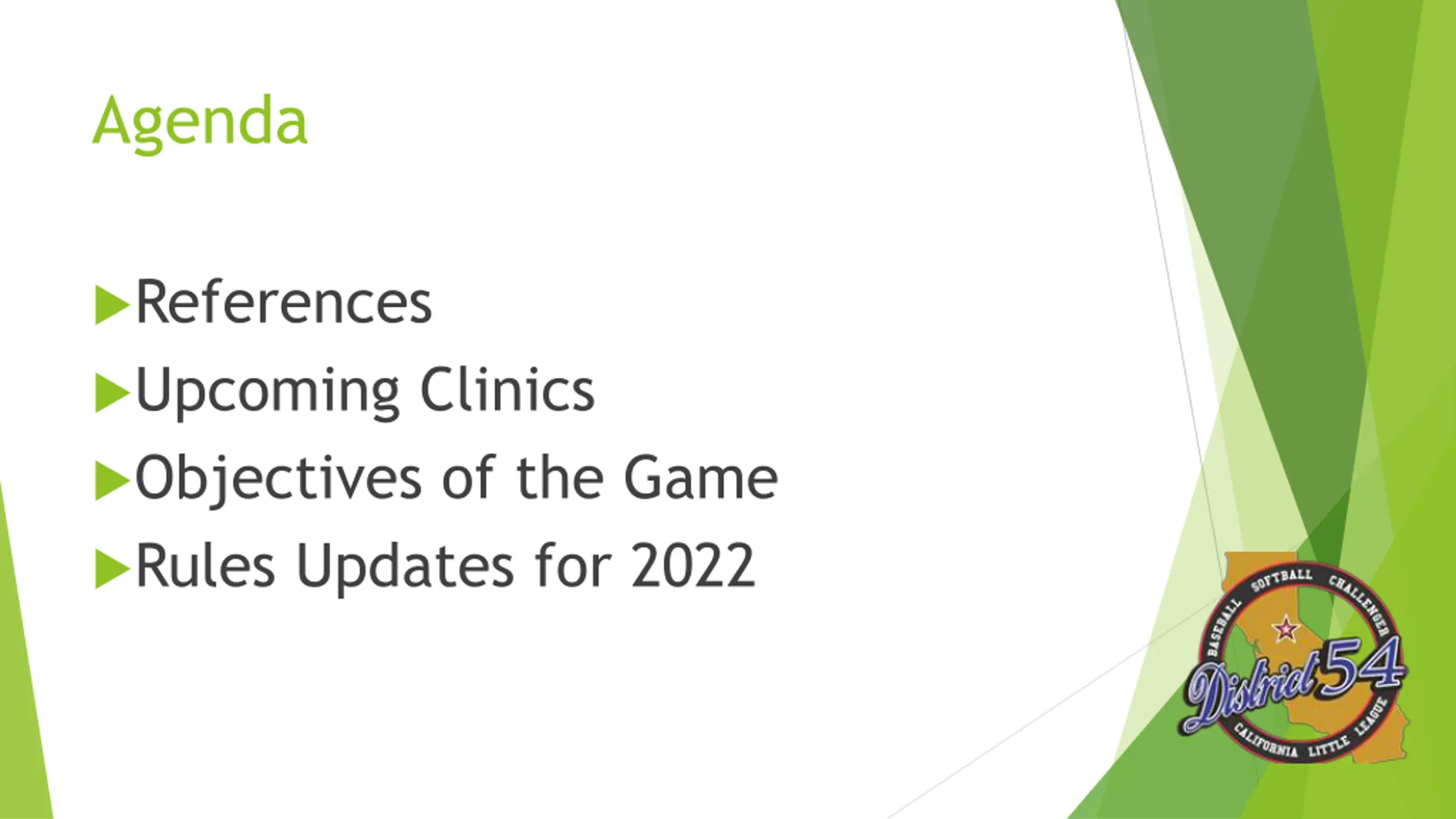 Agenda References Upcoming Clinics Objectives of the Game Rules Updates for 2022