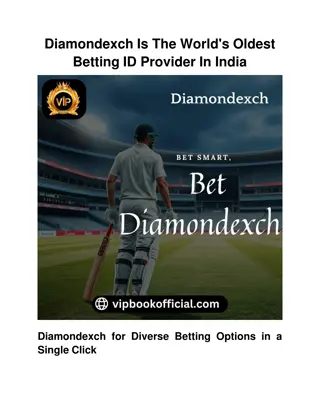 Diamondexch is your Best Website for Online Betting. If you enjoy betting on sports and playing online games, join the VIP book today and start earning real money with casino games like Cricket Poker! nVisit for more information: //vipbookofficial