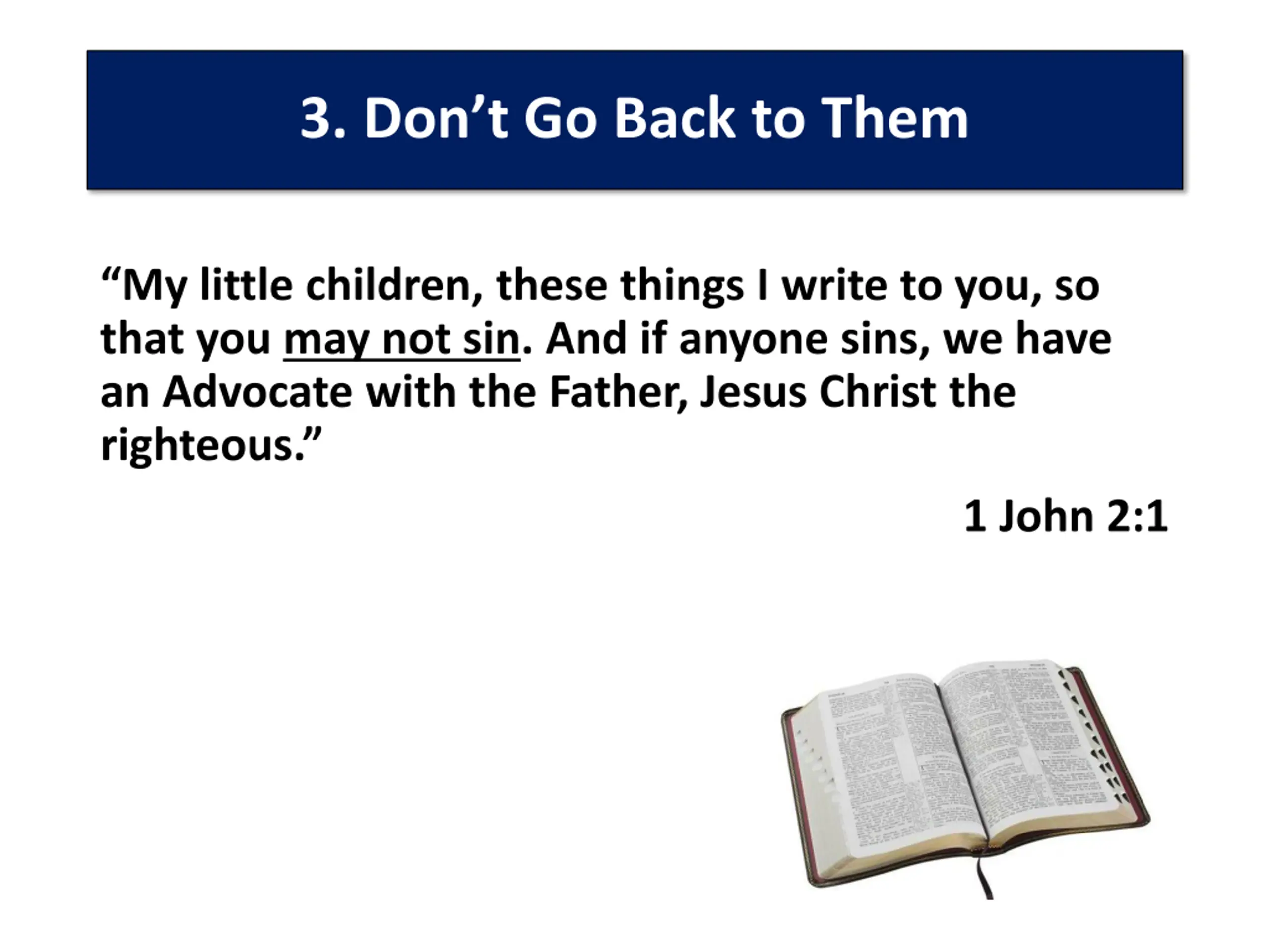 3. Dont Go Back to Them My little children, these things I write to you, so that you may not sin. And if anyone sins, we have an Advocate with the Father, Jesus Christ the righteous. 1 John 2:1